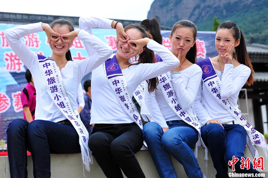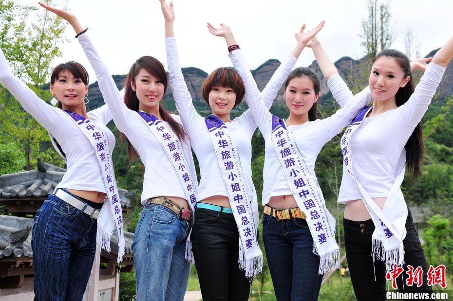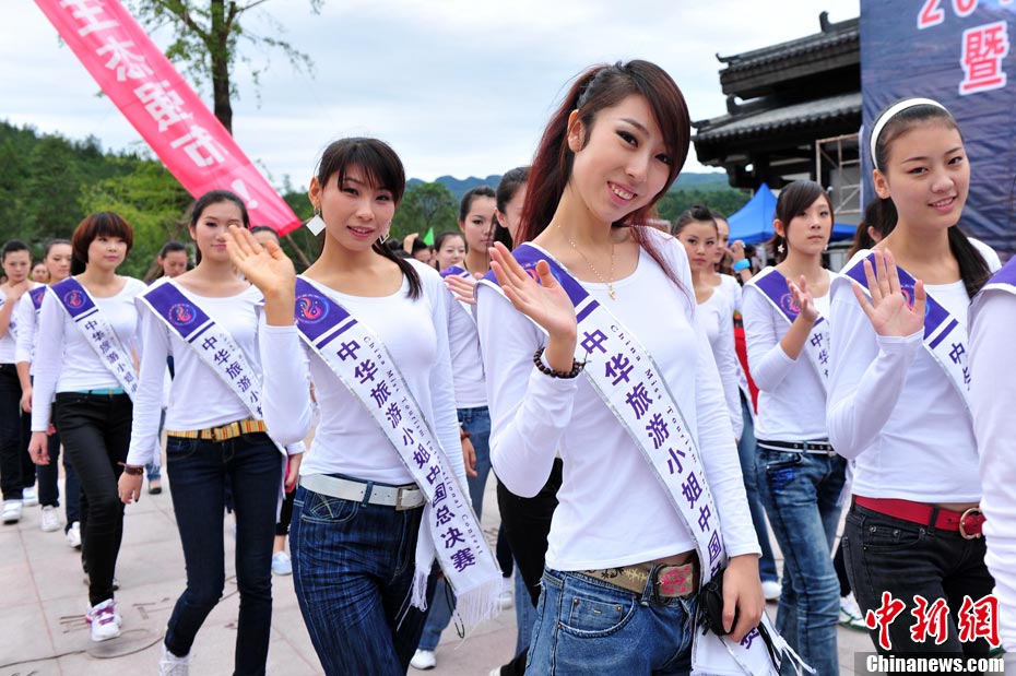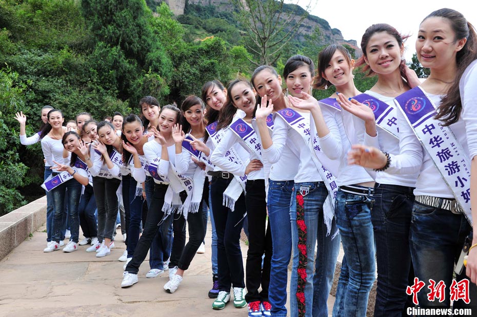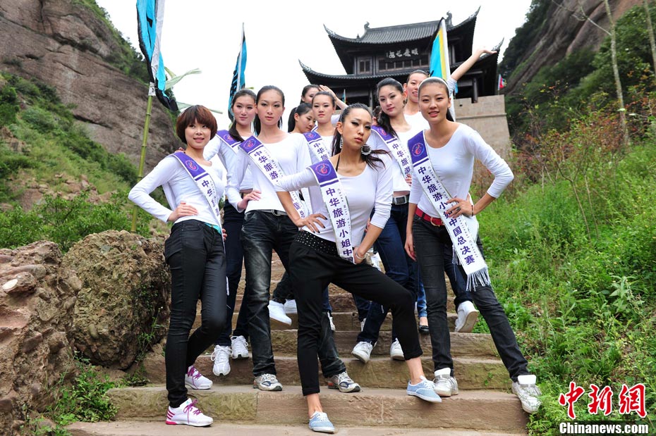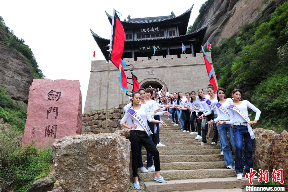 9月23日,2010中華旅游小姐中國總決賽暨劍門關(guān)旅游形象大使全國選拔賽在四川省劍閣縣正式開賽。來自全國各省區(qū)的40名佳麗同登劍門關(guān),用美麗的身姿為這座千年蜀道雄關(guān)增添了靚麗的風(fēng)景線。中新社記者 李學(xué)仕 攝