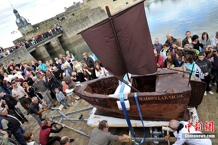 當(dāng)?shù)貢r(shí)間9月25日,一艘用巧克力和冰糖制造的帆船在法國(guó)西北菲尼斯泰爾省的孔卡諾港下海試水,吸引不少居民和游客觀看。這艘巧克力帆船長(zhǎng)3.5米、重1.2噸,由法國(guó)名匠設(shè)計(jì)。帆船的龍骨全部使用冰糖搭建,除風(fēng)帆和發(fā)動(dòng)機(jī)外,其他部分則使用巧克力做材料。當(dāng)天,這只巧克力帆船載著制造者和一名乘客成功駛離孔卡諾港,在海上巡航數(shù)圈后安全返回,現(xiàn)場(chǎng)觀眾彩聲一片。