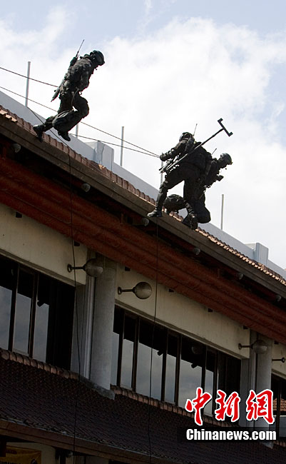 當(dāng)?shù)貢r(shí)間9月28日,印尼特種部隊(duì)和澳大利亞反恐部隊(duì)在印度尼西亞巴厘島國(guó)際機(jī)場(chǎng)舉行了聯(lián)合反恐演習(xí)。