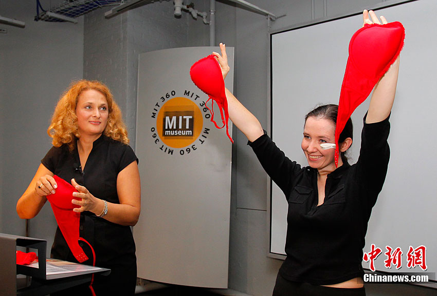 當(dāng)?shù)貢r間9月28日,科學(xué)家博德納在美國麻省理工學(xué)院博物館公開展演了她的發(fā)明——“應(yīng)急胸罩”。該款胸罩可以在瞬間變成防毒面具,保護使用者免遭致命生化制劑的攻擊。憑借這款“防毒胸罩”,博德納曾獲得2009年“搞笑諾貝爾獎”的公共健康獎。