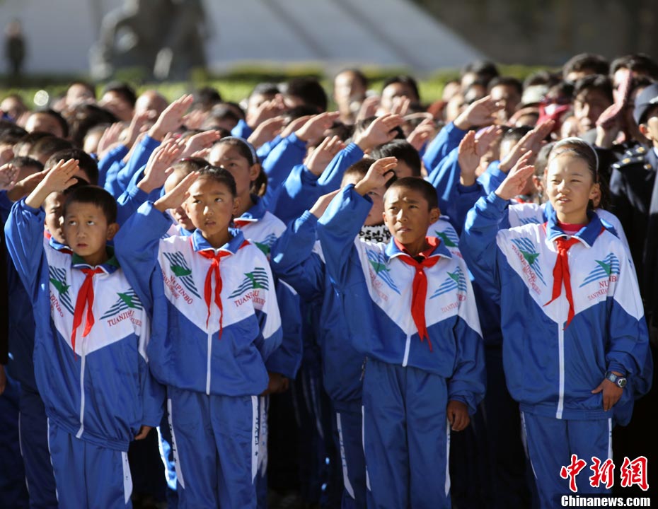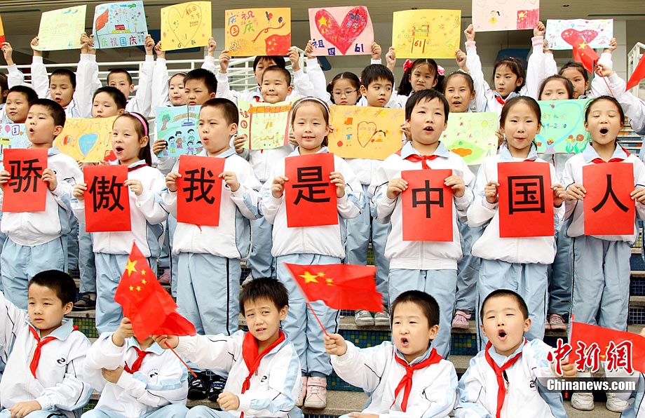 9月27日,一場以“我驕傲,我是中國人”為主題的國慶61周年誦讀繪畫賽活動(dòng)在蘇州市一所小學(xué)校舉行,該校百余名一、二年級學(xué)生以集體誦讀和繪畫展示等形式,表達(dá)對偉大的祖國贊美與衷心祝福。王建中 攝 圖片來源:cnsphoto