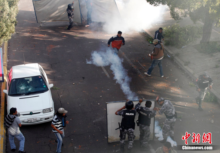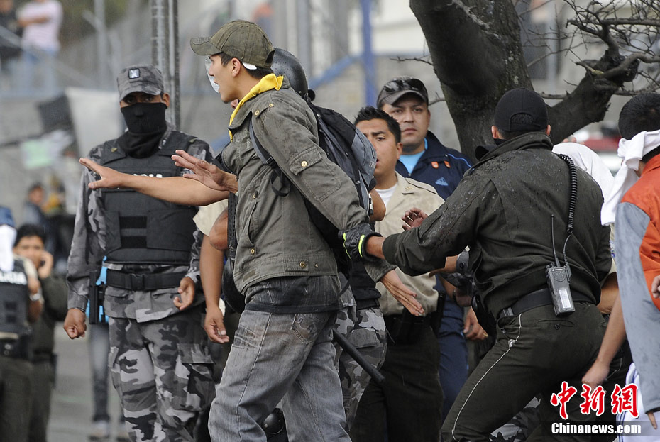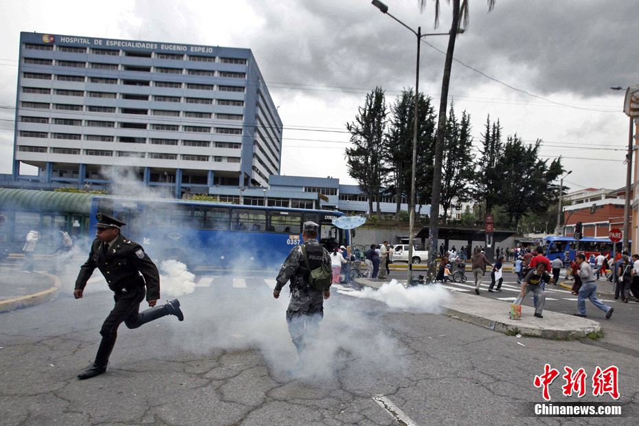 厄瓜多爾當(dāng)?shù)貢r(shí)間9月30日爆發(fā)嚴(yán)重騷亂,目前,厄瓜多爾局勢(shì)十分緊張,抗議者一度控制首都基多的國(guó)際機(jī)場(chǎng),并試圖攻占國(guó)會(huì)大廈。在厄瓜多爾的其他地方也出現(xiàn)嚴(yán)重騷亂,多個(gè)城市間的交通被切斷。圖為在厄瓜多爾首都基多街頭,一名警官參加示威游行。
