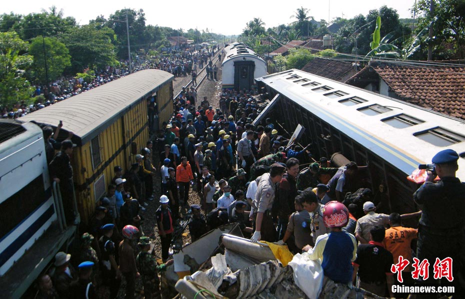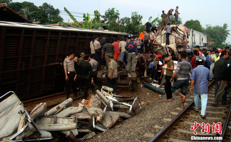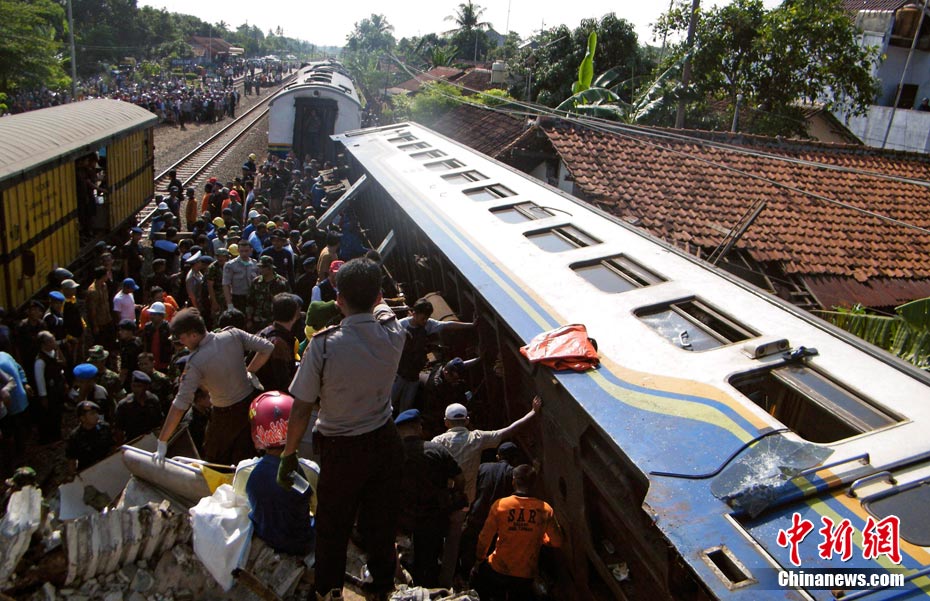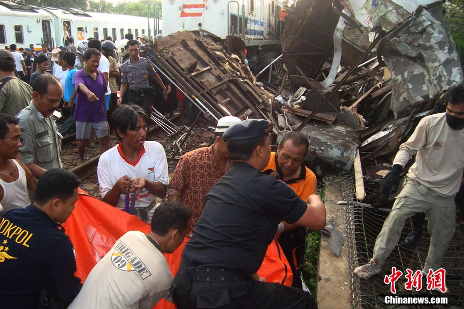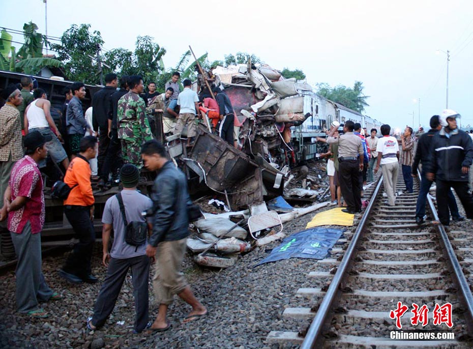 印尼中爪哇省2號發(fā)生火車相撞事故,至少已造成33人死亡。 事發(fā)在中爪哇北岸的珀塔魯坎,一列行駛中的列車,于凌晨約3點鐘,撞向一列停在車站內(nèi)的列車,當(dāng)時大部分人都在睡眠中,因此事故造成嚴重傷亡。