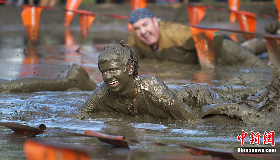 美國紐約舉辦趣味泥地賽跑