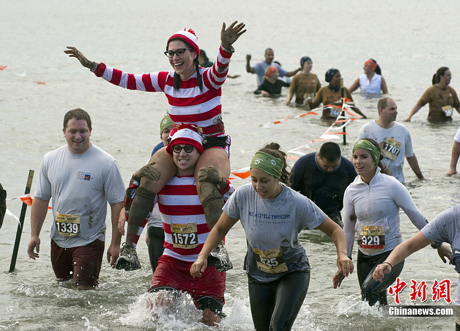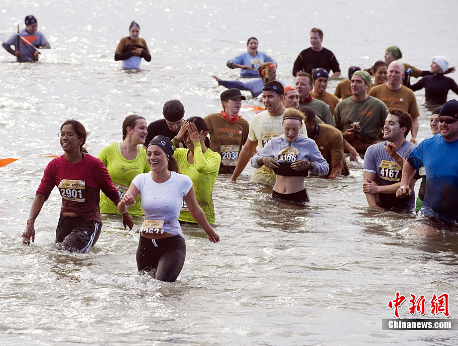 當?shù)貢r間10月3日,數(shù)千名跑步愛好者參加了在美國紐約梅里爾島舉行的泥地跑步大賽。參賽者要在長達一英里的路程中趟過泥地、穿過海灘和各種障礙抵達終點。