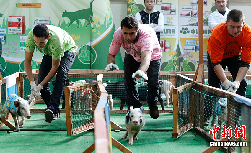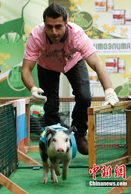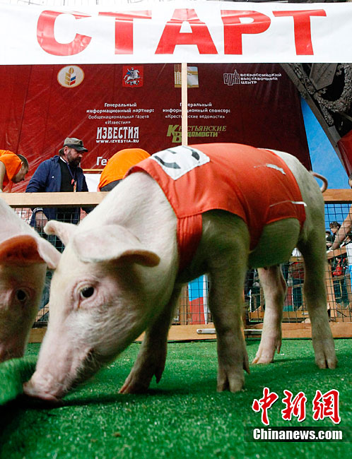 當(dāng)?shù)貢r(shí)間10月2日,俄羅斯莫斯科舉行了一場(chǎng)別開聲面的豬仔賽跑比賽,這是俄羅斯“金秋-2010”農(nóng)業(yè)成就展上的一部分。