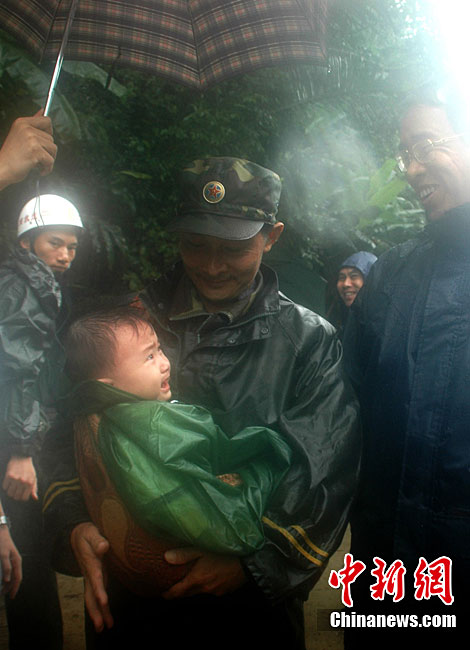 10月4日15時許,經(jīng)過救援人員近48個小時的緊張救援,因山體滑坡被滯留在吊羅山中的125名游客已經(jīng)全部安全轉(zhuǎn)移下山。10月2日下午3時,在海南陵水吊羅山林業(yè)局上山道路約3.5公里處,突發(fā)山體滑坡,海南省政府相關部門和陵水縣委縣政府全力組織人員實施救援。圖為今年已經(jīng)88歲的老人許環(huán)渠(音)在救援人員的陪護下轉(zhuǎn)移。中新社記者 尹海明 攝