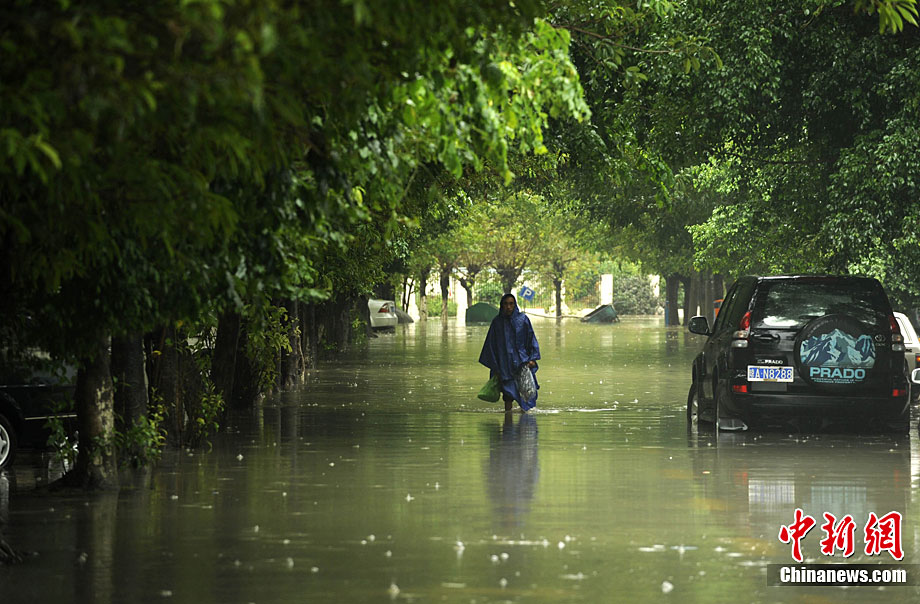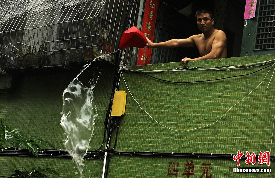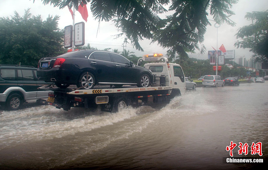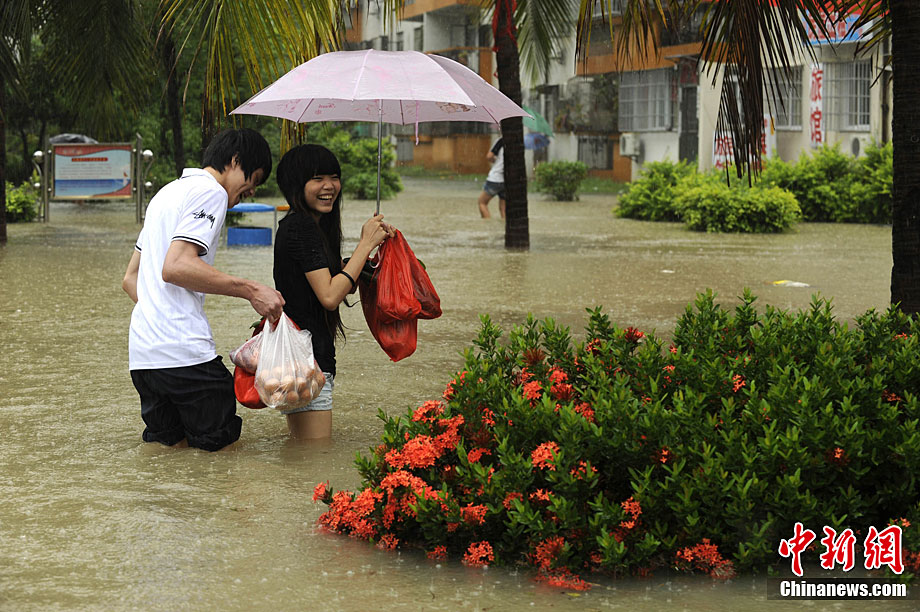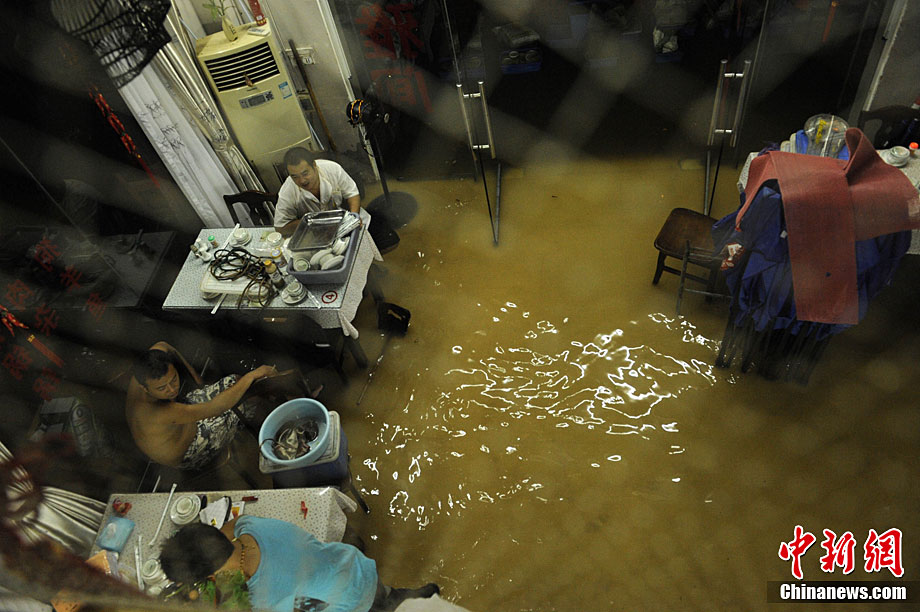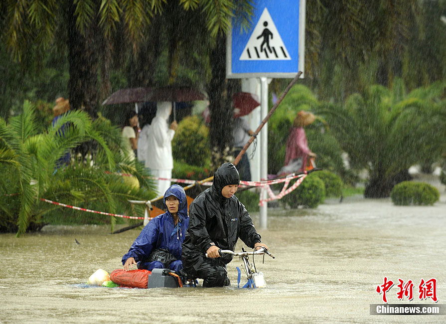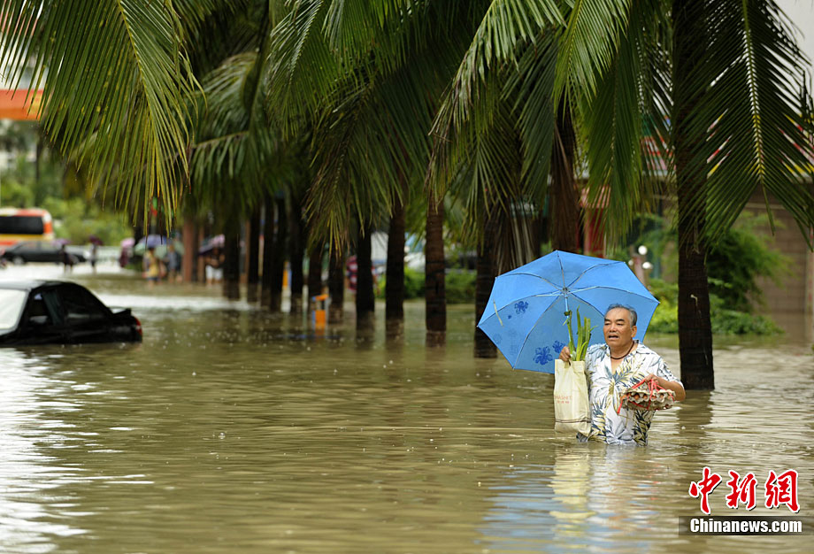 10月5日,持續(xù)五天的暴雨導(dǎo)致三亞多個小區(qū)嚴(yán)重積水。不少市民家中進(jìn)水,商戶紛紛歇業(yè)避雨。徐勤濤 攝 圖片來源:cnsphoto