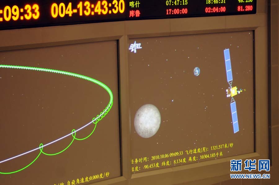 10月6日,嫦娥二號(hào)在近月點(diǎn)精準(zhǔn)“剎車”,順利進(jìn)入100公里軌道繞月。