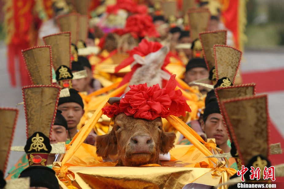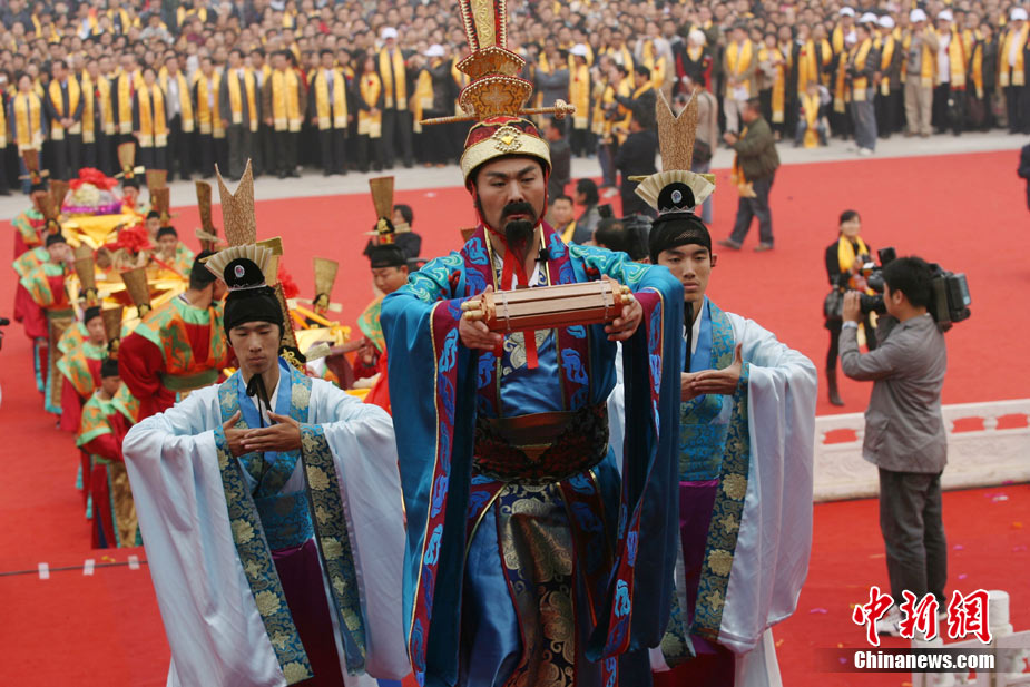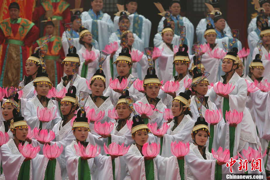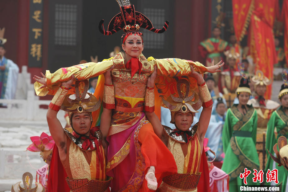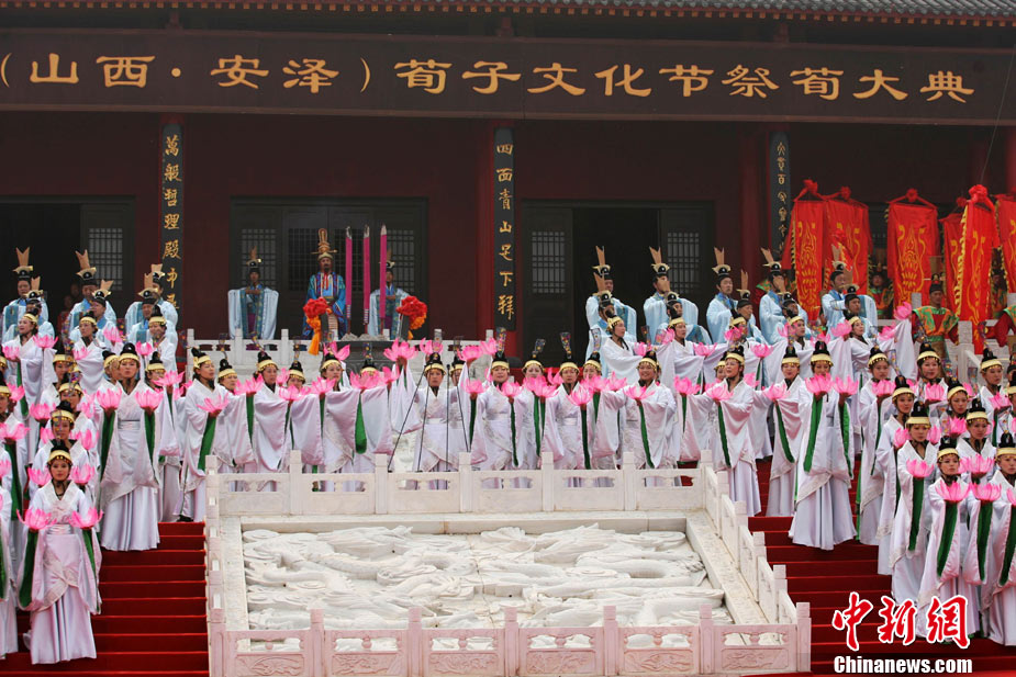 10月10日,演員在祭荀大典上表演戰(zhàn)國(guó)風(fēng)格的舞蹈。當(dāng)日,第五屆中國(guó)荀子文化節(jié)開(kāi)幕式暨祭荀大典在荀子故里山西省安澤縣舉行。包括10國(guó)駐華大使在內(nèi)的數(shù)千名海內(nèi)外人士參加了此次大典。中新社發(fā) 蘇丹 攝