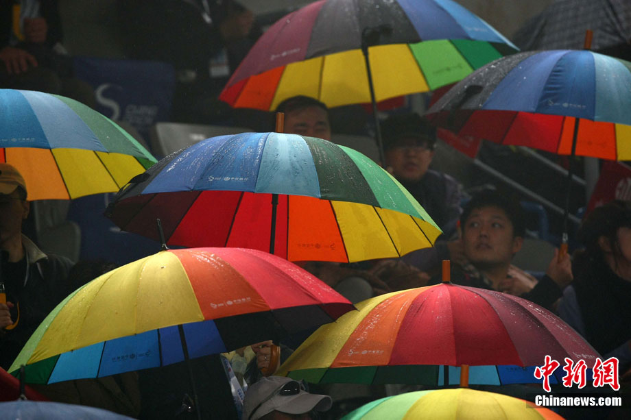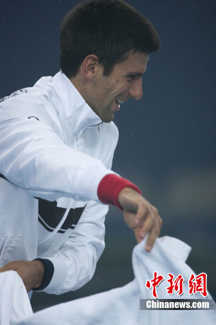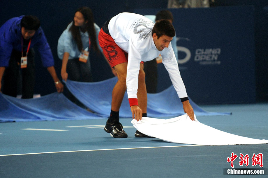 10月10日,總獎金額為210萬美元的ATP'500中網(wǎng)公開賽進(jìn)入最后一天的爭奪,衛(wèi)冕冠軍德約科維奇與西班牙名將費(fèi)雷爾之間的男單決賽因雨中斷,比賽暫停時(shí)小德以3-1的比分暫時(shí)領(lǐng)先。中新社記者 富田 攝