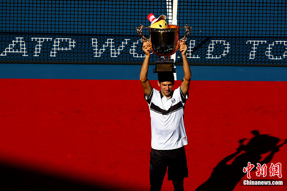 10月11日,中國(guó)網(wǎng)球公開(kāi)賽決出了男單冠軍的歸屬。在這場(chǎng)因雨持續(xù)了兩天的比賽中,衛(wèi)冕冠軍兼頭號(hào)種子德約科維奇以6-2/6-4完勝費(fèi)雷爾,成功衛(wèi)冕2010中網(wǎng)男單桂冠。中新社記者 富田 攝