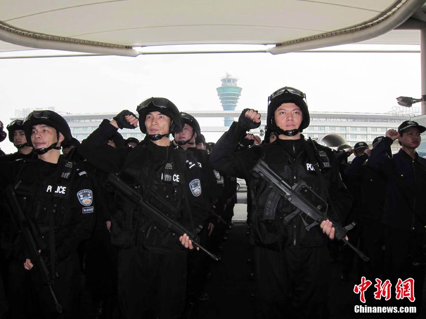 10月12日上午,廣州白云國(guó)際機(jī)場(chǎng)公安局舉行亞運(yùn)安保誓師大會(huì),數(shù)百名警員出席大會(huì),在此間保證圓滿完成亞運(yùn)安保任務(wù)。中新社記者 柯小軍 攝