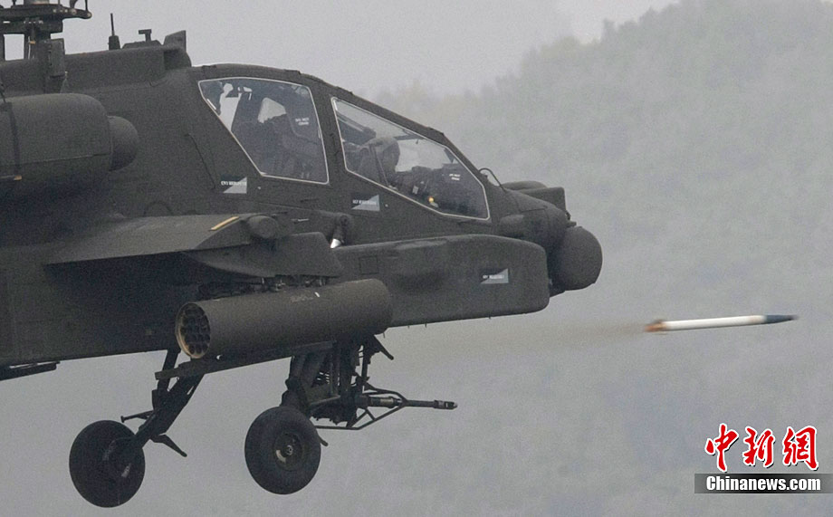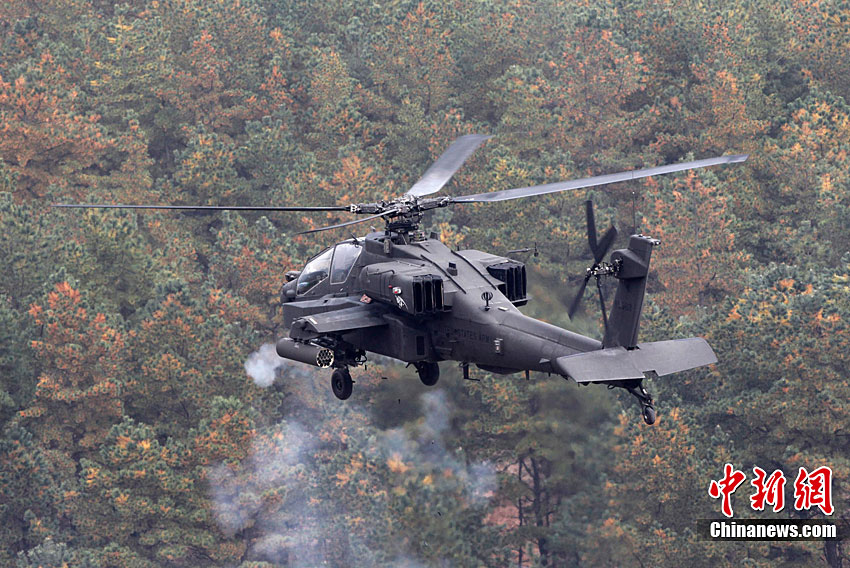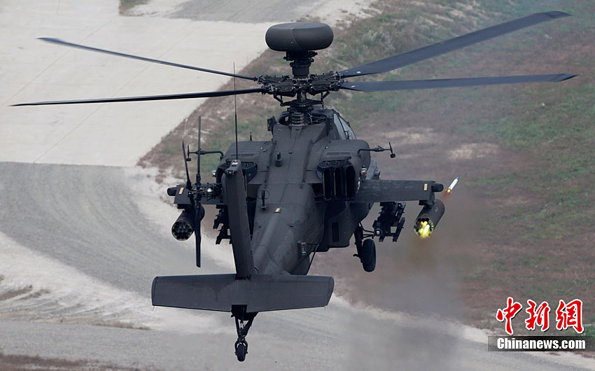 當(dāng)?shù)貢r間10月13日,韓國在釜山附近海域開始為期兩天的防擴(kuò)散聯(lián)合演習(xí)。此次演習(xí)由韓國軍隊主導(dǎo),美國、日本等15個國家參加。其中,韓國、美國、日本、澳大利亞參與海上攔截演習(xí)。韓軍出動兩艘韓國型驅(qū)逐艦、兩艘登陸艦等艦艇。美國宙斯盾驅(qū)逐艦、日本4000噸級驅(qū)逐艦、澳大利亞P-3C巡邏機(jī)等參演。圖為10月13日,美國AH-64武裝直升機(jī)在韓國抱川進(jìn)行防擴(kuò)散聯(lián)合演習(xí)中進(jìn)行射擊。