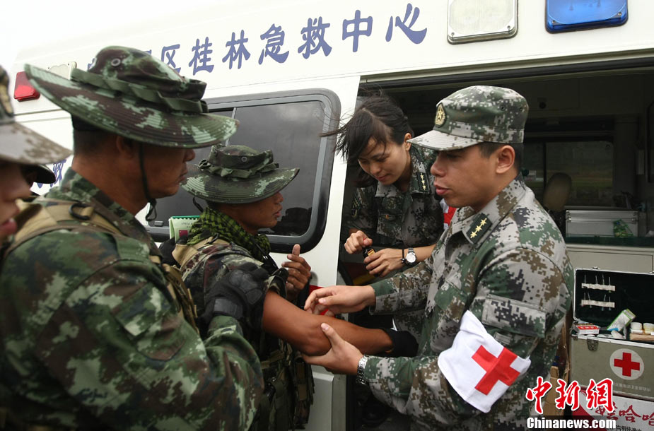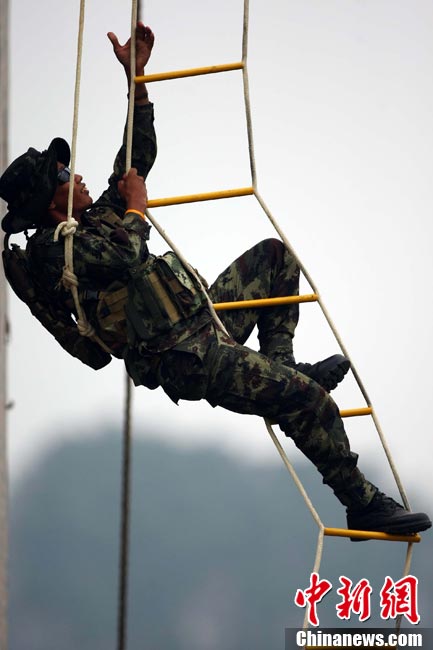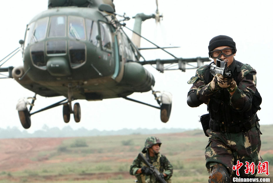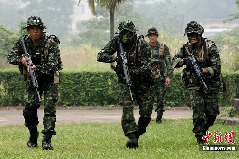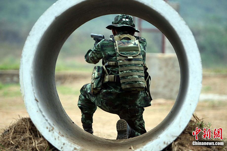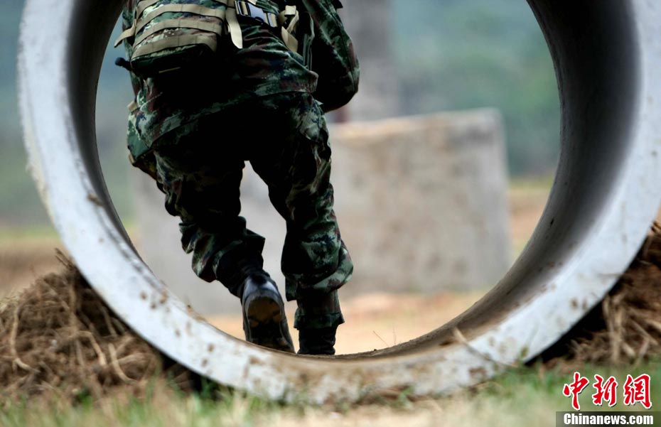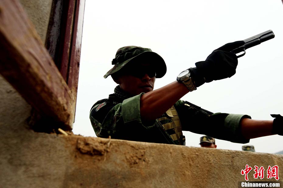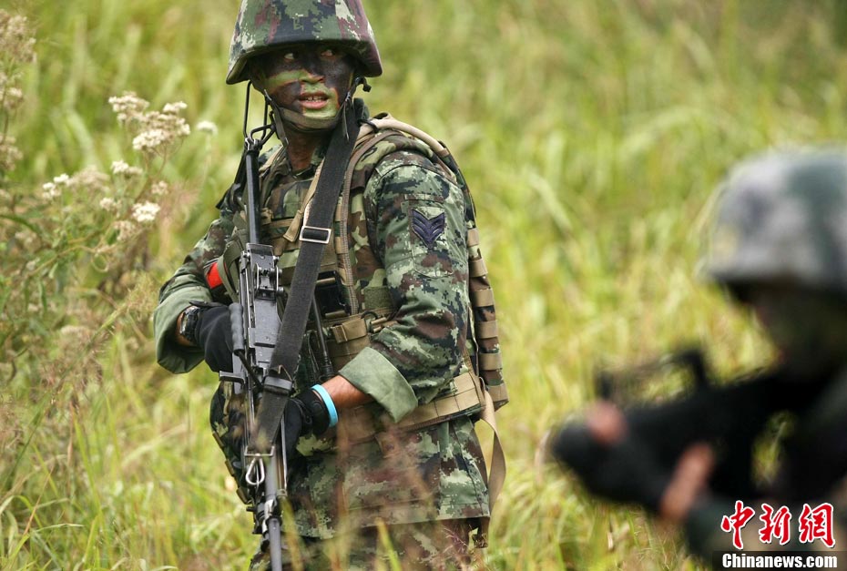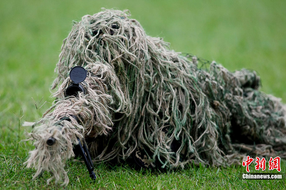 “突擊-2010”中泰陸軍特種部隊反恐聯(lián)合訓練10月6日至20日在廣西壯族自治區(qū)桂林進行。圖為身著偽裝服的狙擊手。中新社記者 杜洋 攝