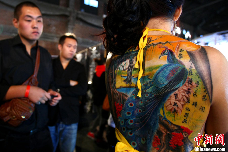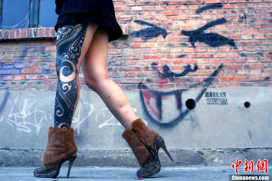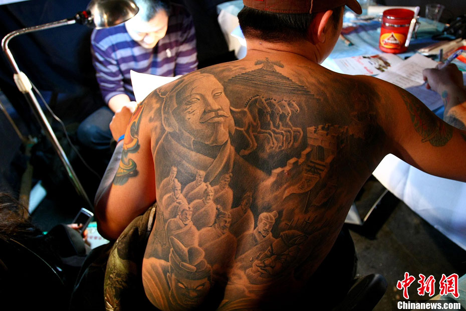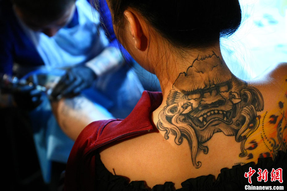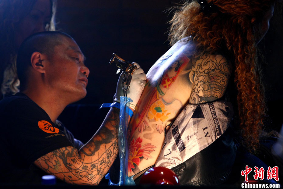 10月15日,中國(國際)紋身藝術(shù)節(jié)在北京798藝術(shù)區(qū)開幕,這是國內(nèi)舉辦的首次國際性紋身藝術(shù)節(jié)。本屆紋身展會(huì)的宗旨是:“讓藝術(shù)向紋身靠攏”,為國內(nèi)外紋身師提供一個(gè)公平、公正的同臺獻(xiàn)藝和交流的平臺。來自美國、澳大利亞、新西蘭等國以及中國許多省市的紋身師現(xiàn)場展示富有個(gè)性、創(chuàng)意十足的紋身作品。藝術(shù)節(jié)將持續(xù)至17日。 中新社發(fā) 富田 攝