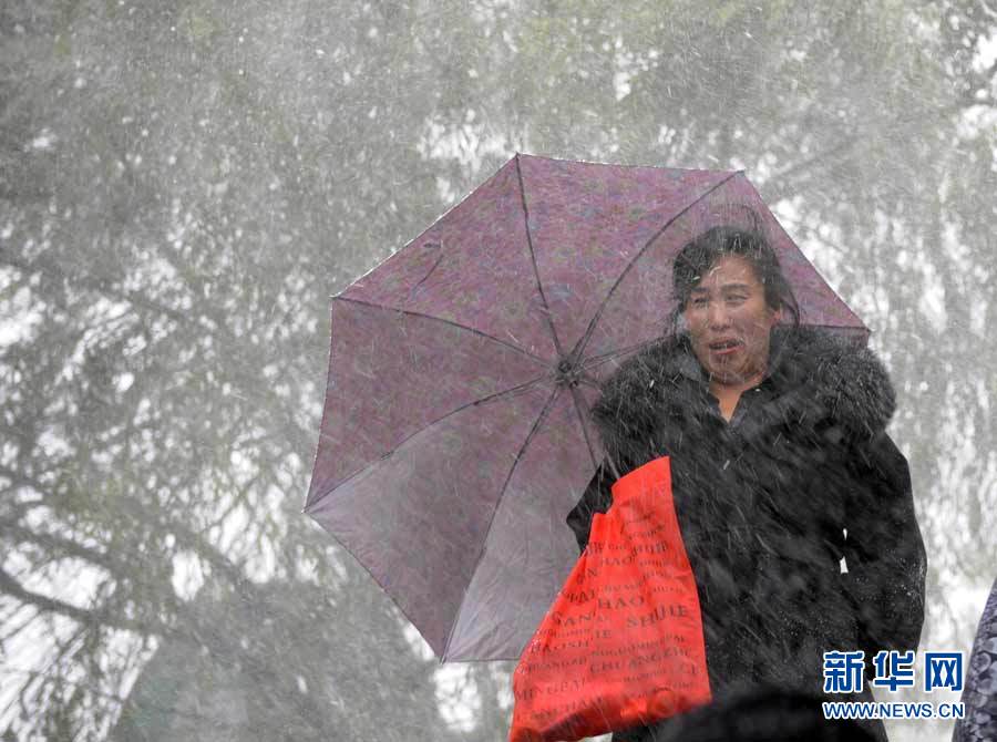 中央氣象臺(tái)近日發(fā)布消息,受3股冷空氣影響,新疆、西藏、青海、甘肅、黑龍江和內(nèi)蒙古等9省區(qū)入冬在即。圖為10月16日,黑龍江省七臺(tái)河市降雪,市民打著傘冒雪出行。秦存廣 攝 圖片來(lái)源:新華網(wǎng)