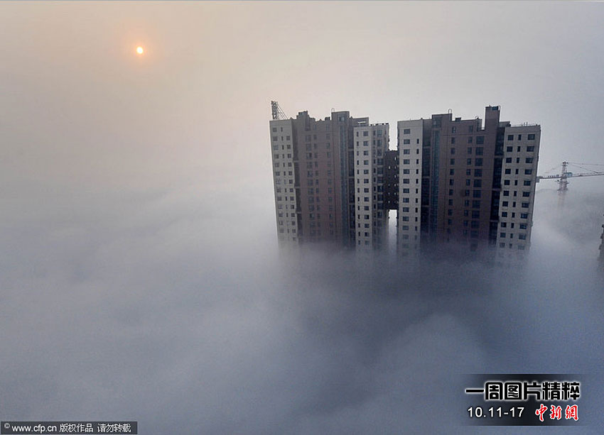 10月9日早上6點(diǎn)多,一場(chǎng)罕見(jiàn)的“平流霧”襲擊合肥。合肥城市的建筑掩映在濃霧中異常壯觀(guān)。王長(zhǎng)豐 攝 圖片來(lái)源:CFP視覺(jué)中國(guó)
