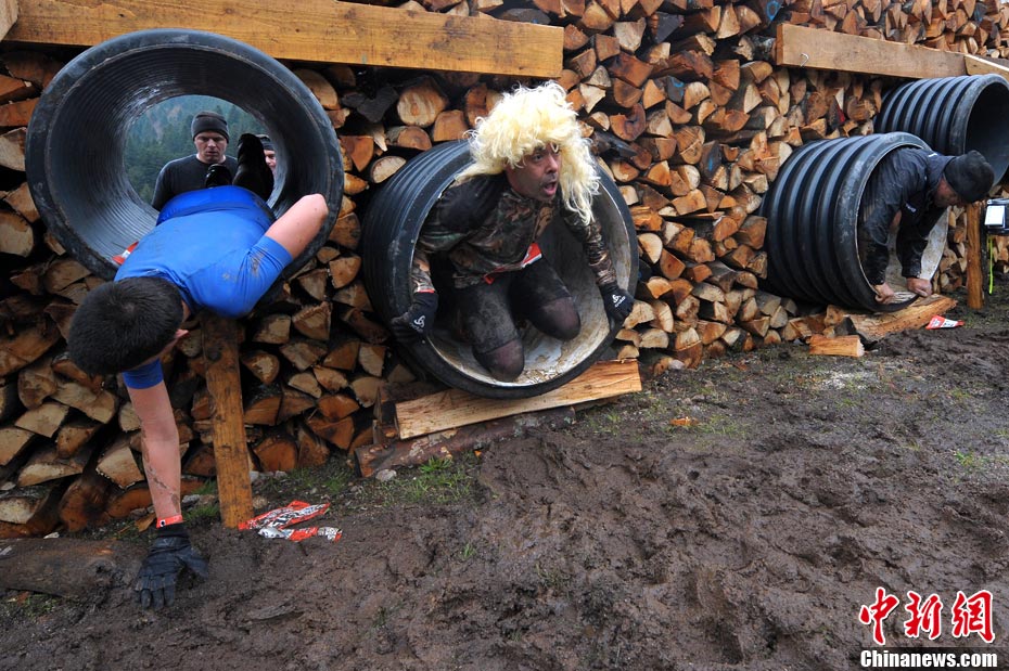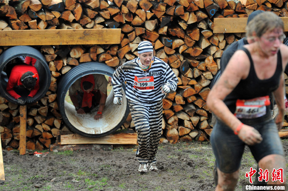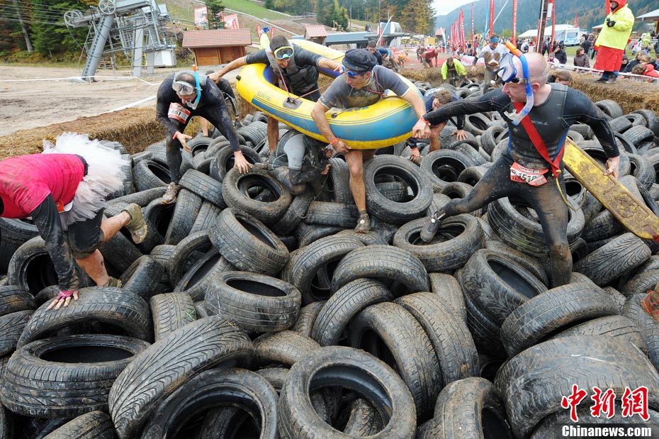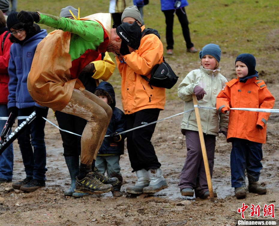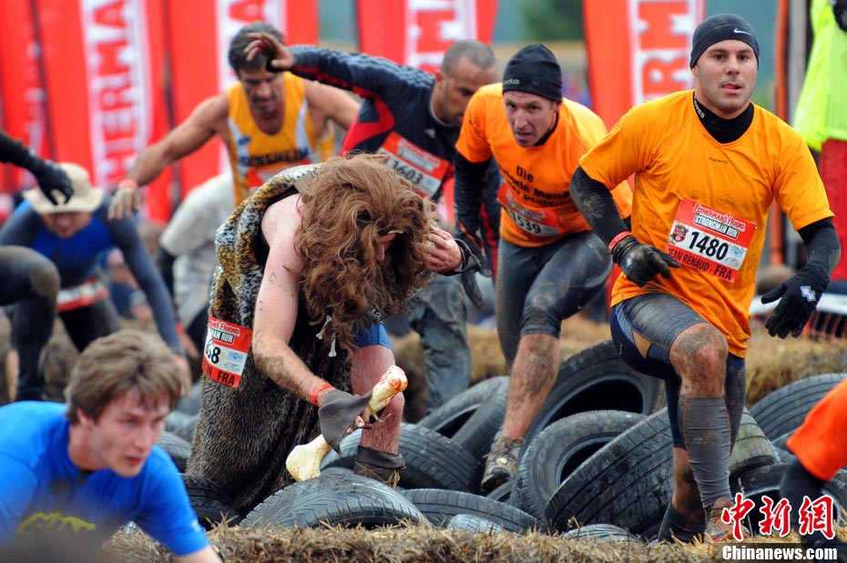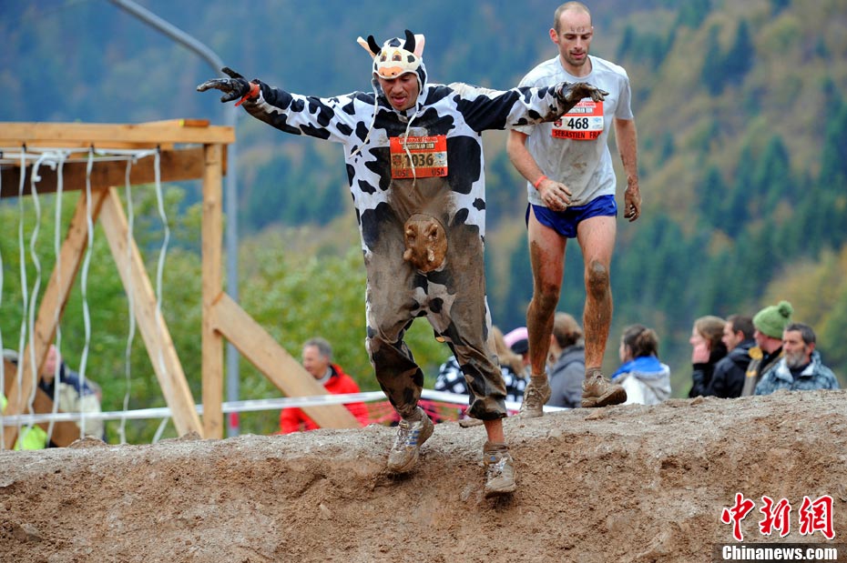 當(dāng)?shù)貢r間2010年10月17日,法國東部布雷斯(La Bresse)人們參加漁夫“狂奔”跑步大賽。
