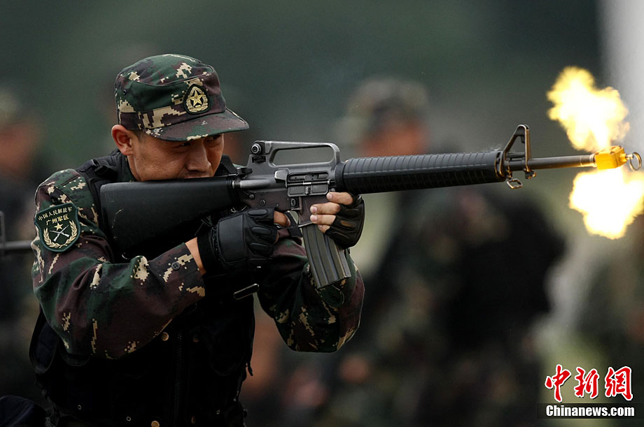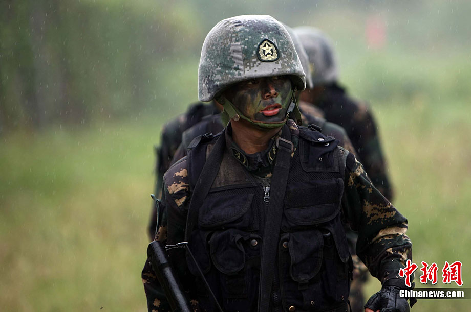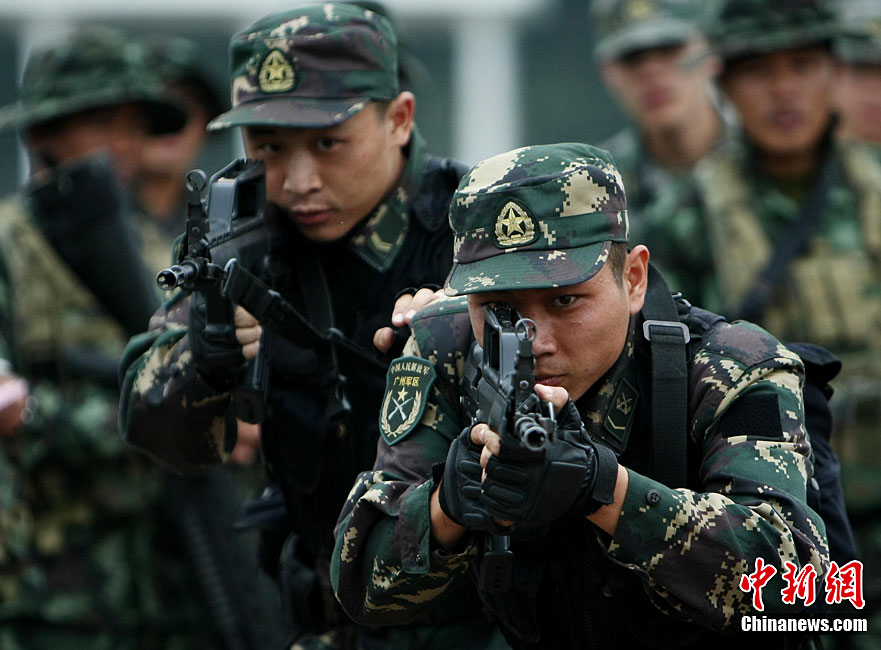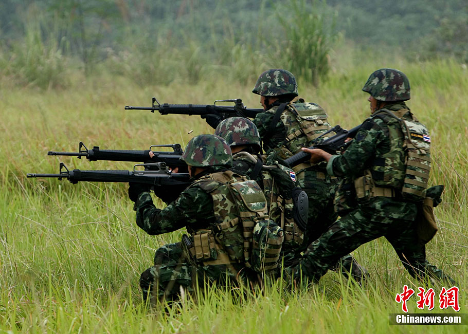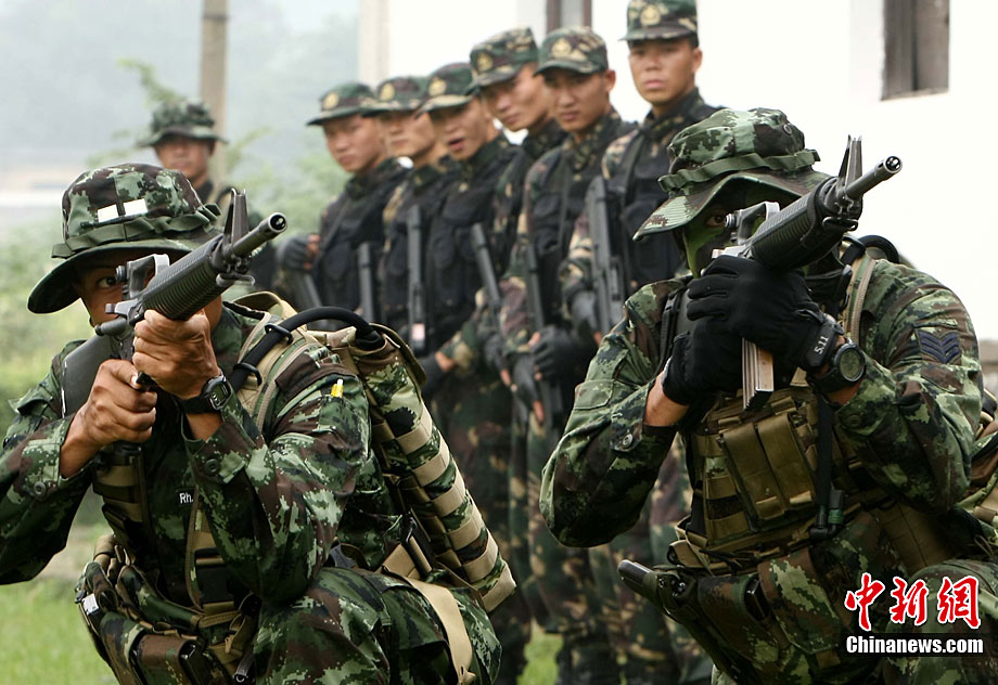10月6日至20日,代號“突擊—2010”的中泰陸軍特種部隊聯(lián)合反恐訓(xùn)練在廣西桂林舉行。參加演練的,分別是被譽為“南國利劍”的廣州軍區(qū)某特種大隊和被譽為“叢林猛虎”的泰國陸軍特戰(zhàn)三團派出的120名官兵。在兩周時間內(nèi),訓(xùn)練內(nèi)容涵蓋射擊、攀登、反制戰(zhàn)術(shù)等8大項、20多個小項的課目。中新社記者 杜洋 攝