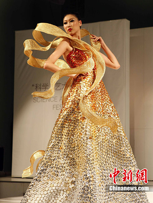 10月19日,北京服裝學(xué)院第六屆“科學(xué)·藝術(shù)·時(shí)尚”節(jié)開幕。此次活動(dòng)將以往的“科學(xué)·藝術(shù)·服裝”正式更名為“科學(xué)·藝術(shù)·時(shí)尚”,融入了更多的時(shí)尚色彩,是歷屆活動(dòng)中最豐富的一次。其中包括展示中、日、韓傳統(tǒng)服飾展和技藝交流;朝鮮時(shí)代韓服的美與流行;拼布藝術(shù)展;學(xué)生創(chuàng)意一條街等,全面體現(xiàn)了該校藝工融合的特色。圖為華彩意象—方·圓·盛時(shí)尚服裝秀展示最新潮流。中新社記者 任海霞 攝