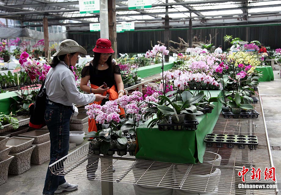 近日,記者隨參加臺(tái)灣觀光年會(huì)的臺(tái)灣區(qū)觀光協(xié)會(huì)聯(lián)合會(huì)成員行腳彰化縣鄉(xiāng)鎮(zhèn)景點(diǎn),在地名特產(chǎn)店。圖為彰化縣大村鄉(xiāng)的臺(tái)大蘭園展售部。臺(tái)大蘭園成立于1981年,是最早將臺(tái)灣蝴蝶蘭出口到美國(guó)的公司之一,現(xiàn)為大村鄉(xiāng)知名景點(diǎn)。中新社記者 陳立宇 攝