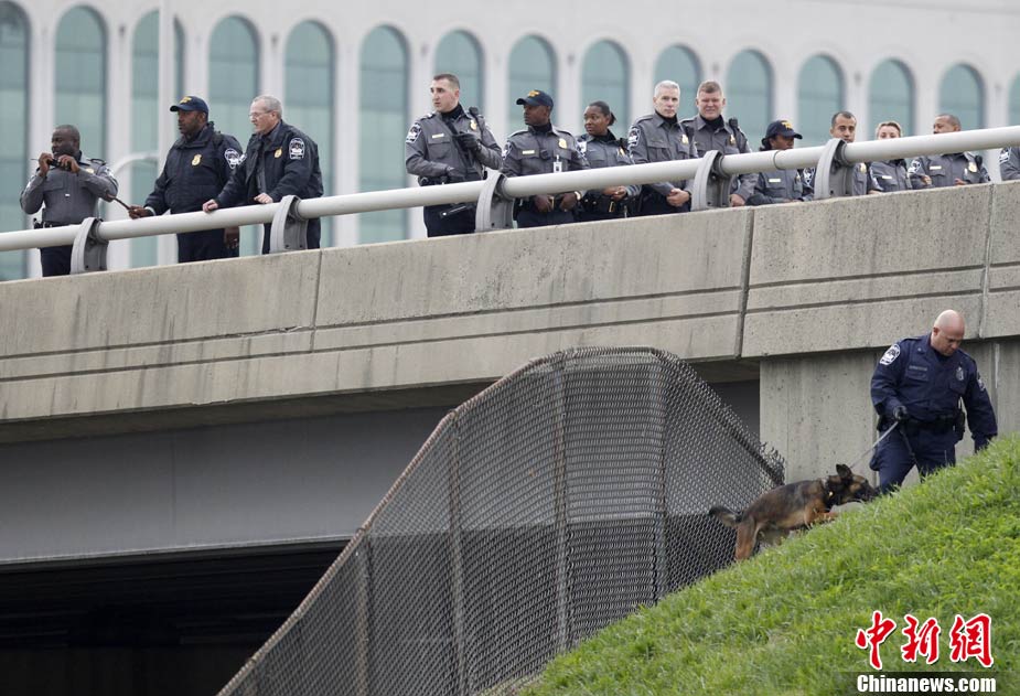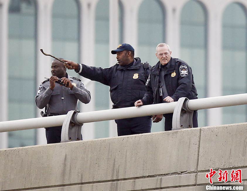 美國(guó)軍事威力的象征—五角大樓當(dāng)?shù)貢r(shí)間19日清晨遭到槍擊,從一處停車場(chǎng)射出的子彈擊中了大樓辦公室的玻璃,但未造成人員傷亡。圖為調(diào)查人員在美國(guó)華盛頓五角大樓附近搜尋證物。
