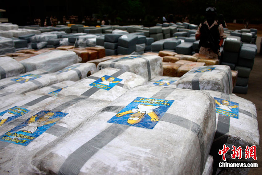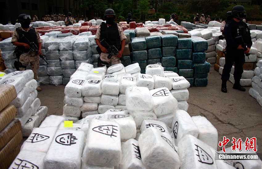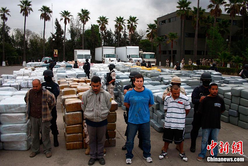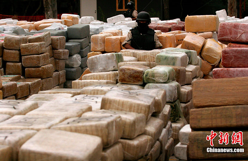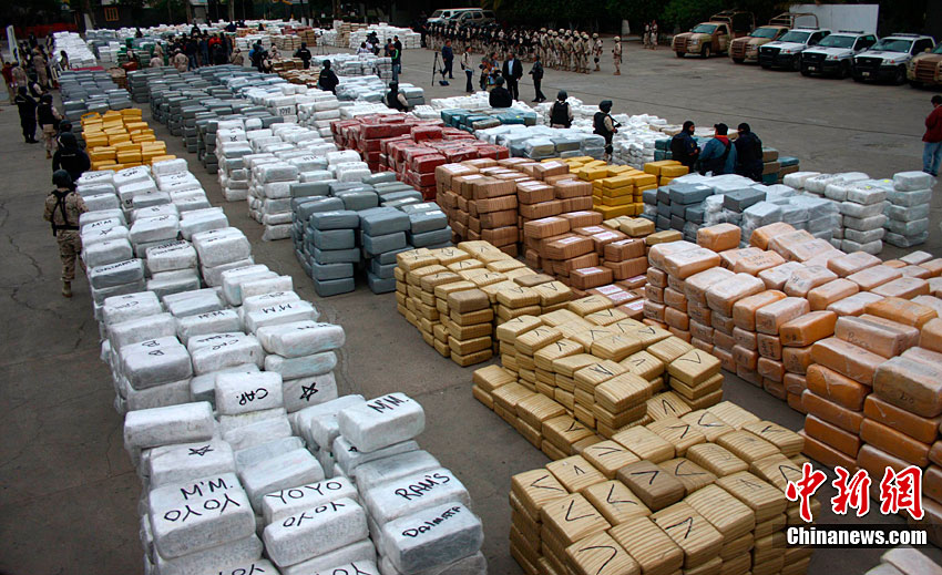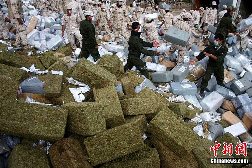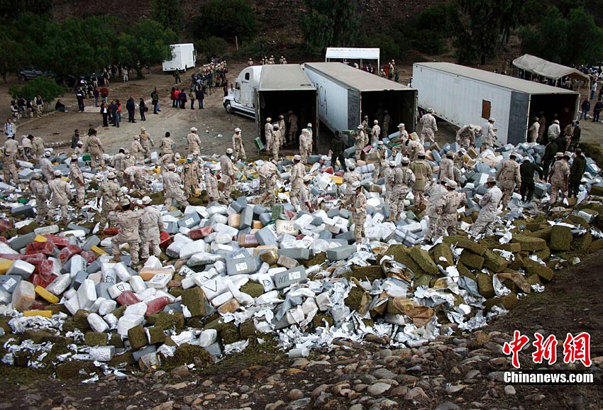 當?shù)貢r間10月20日,墨西哥在北部邊境城市蒂華納的一個軍營內集中銷毀了在北部邊境繳獲的134噸大麻。
