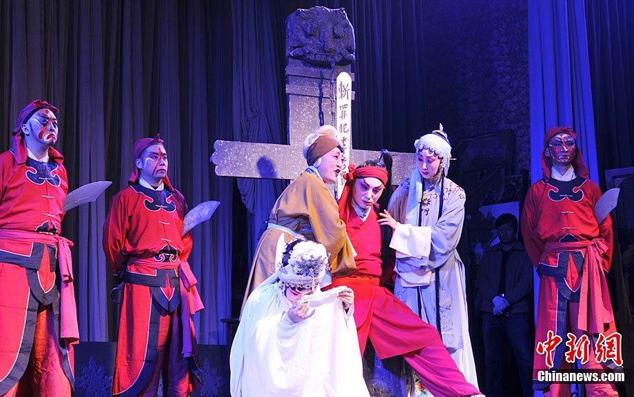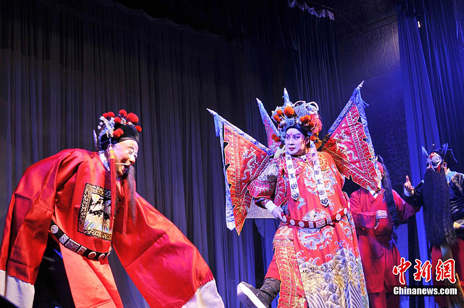 10月18日至22日,甘肅秦劇團到基層為鄉(xiāng)下人唱“大戲”,演員們唱念做打演,招招真功夫給鄉(xiāng)親們送來了一場場戲曲大餐!度窝、《火焰駒》、《竇娥冤》等演出,一出出膾炙人口的傳統(tǒng)劇目風(fēng)格各異,精彩紛呈,鄉(xiāng)親們在一次次的情節(jié)跌宕中笑聲不止、掌聲不斷。秦腔又稱亂彈,源于西秦腔,流行于中國西北的陜西、甘肅、青海、寧夏、新疆等地,又因其以棗木梆子為擊節(jié)樂器,所以又叫“梆子腔”,俗稱“桄桄子”,經(jīng)國務(wù)院批準(zhǔn)列入第一批國家級非物質(zhì)文化遺產(chǎn)名錄。楊艷敏 攝