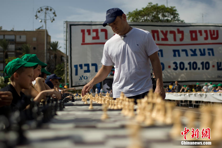2010年10月21日,以色列特級(jí)大師格爾松在特拉維夫的拉賓廣場(chǎng)舉行國(guó)際象棋車輪戰(zhàn),與525名棋手對(duì)弈,沖擊去年夏天由伊朗大師馬約布創(chuàng)造的1對(duì)500名棋手的吉尼斯世界紀(jì)錄。