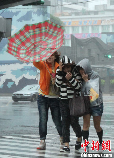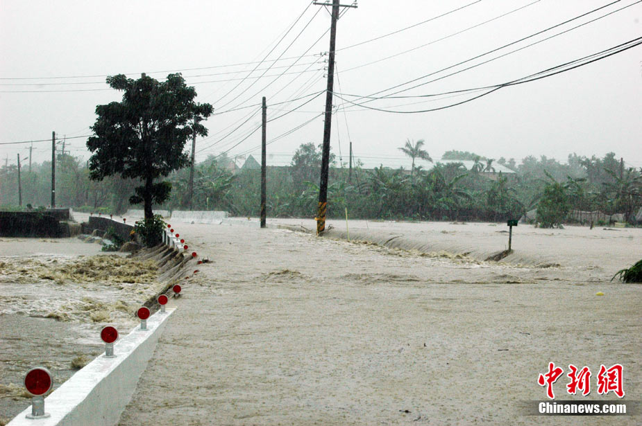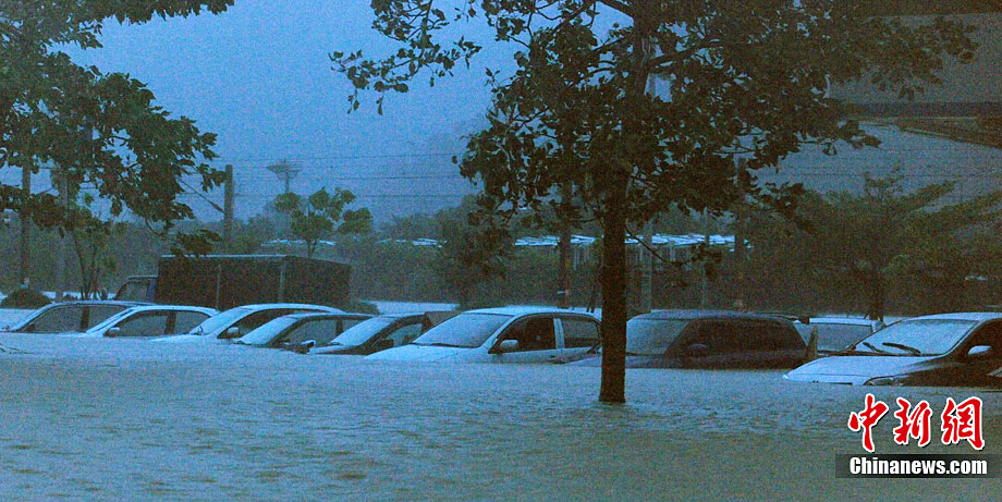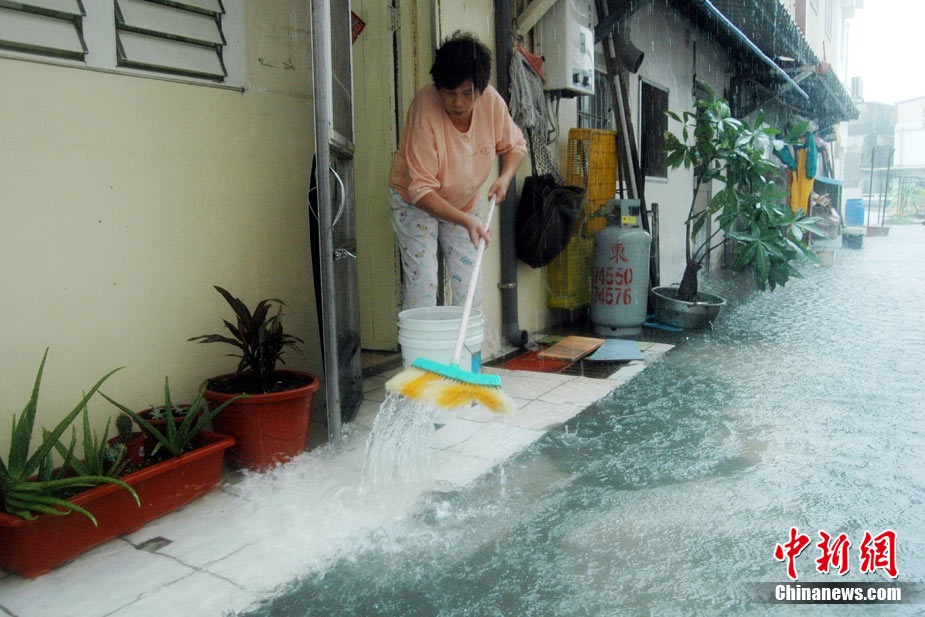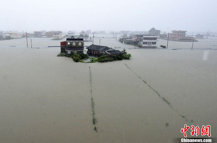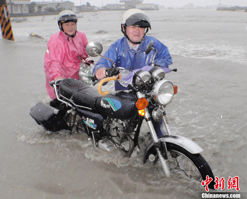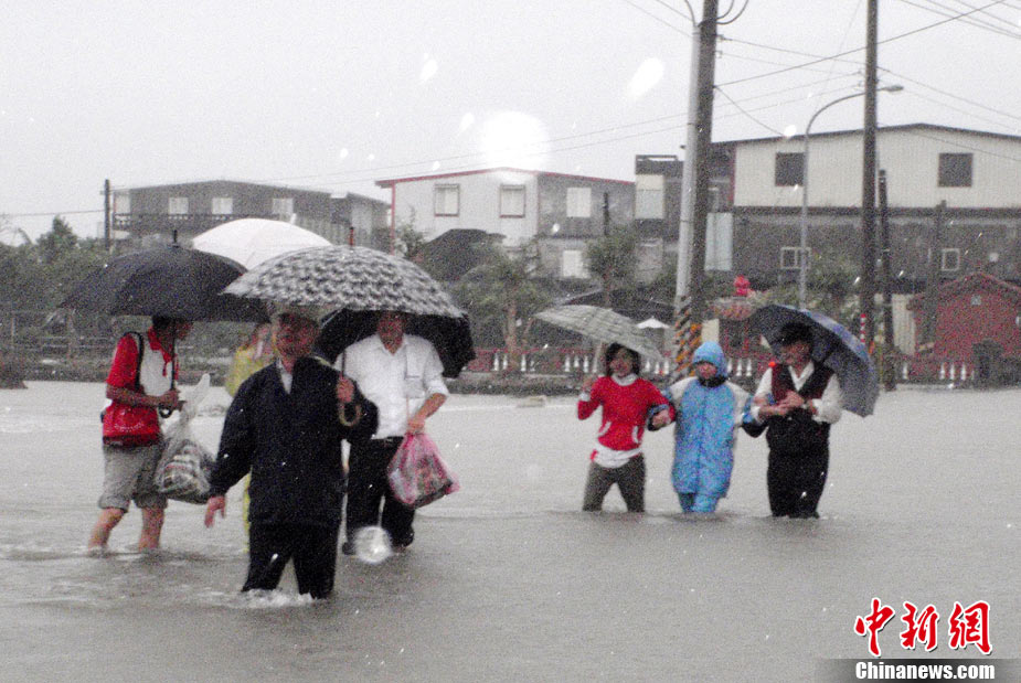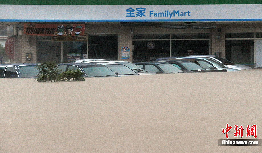 10月21日,受臺風(fēng)“梅姬”(大陸稱“鲇魚”)影響,臺灣宜蘭縣冬山鄉(xiāng)中山村豪雨不斷,當(dāng)?shù)貎?nèi)湖路嚴(yán)重積水,積水最深處有半人高。 中新社發(fā) CNA 攝 圖片來源:CNSPHOTO