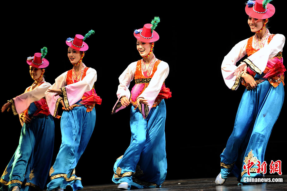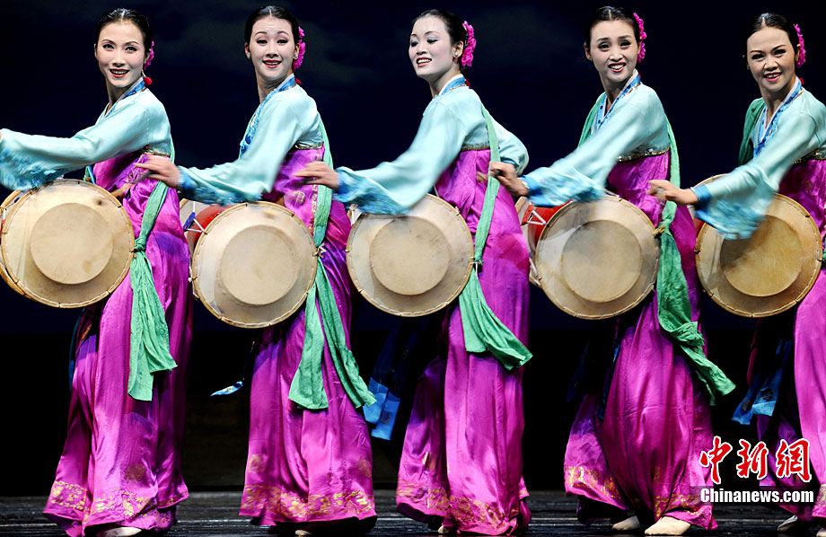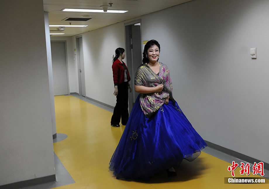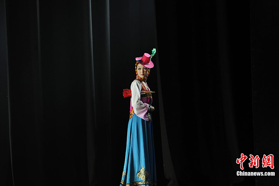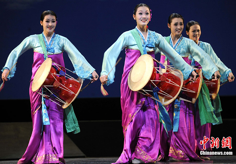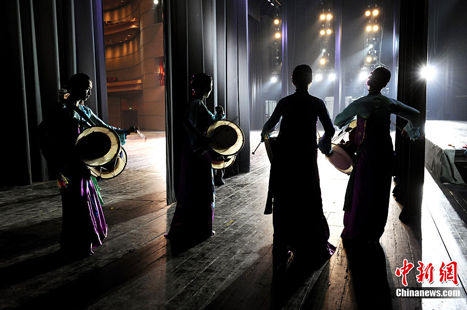 10月22日晚,朝鮮平壤藝術(shù)團(tuán)在國家大劇院進(jìn)行彩排。10月23至24日,朝鮮平壤藝術(shù)團(tuán)將在北京國家大劇院歌劇院上演歌舞晚會(huì)《怒放的金達(dá)萊》。此次來訪的朝鮮平壤藝術(shù)團(tuán),是朝鮮政府專門為參加上海世博會(huì)朝鮮館日組建的表演團(tuán)體,該團(tuán)成員來自朝鮮最重要的三大藝術(shù)團(tuán)體:萬壽臺(tái)藝術(shù)團(tuán)、血海藝術(shù)團(tuán)和朝鮮民族國立藝術(shù)團(tuán),參演人員薈萃了朝鮮最優(yōu)秀的藝術(shù)家。演員們將身著獨(dú)具特色的民族服飾,表演《長鼓舞》、《拾貝姑娘》、《鈴鐺舞》、《三人舞》等傳統(tǒng)舞蹈。中新社記者 劉震 攝