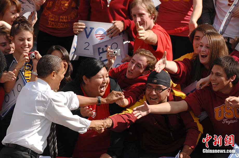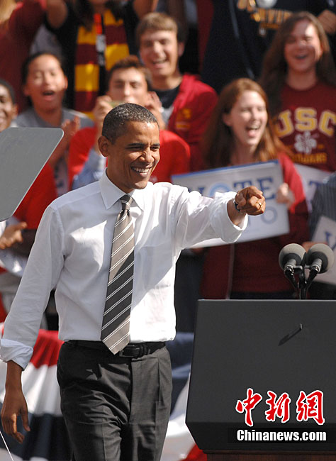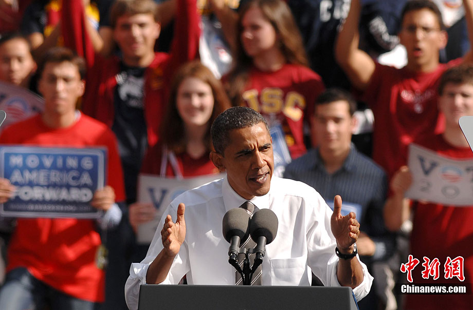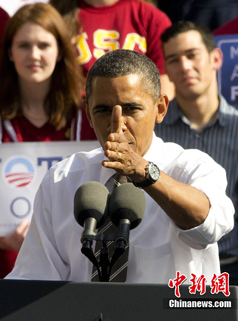 當(dāng)?shù)貢r間10月22日,距離美國中期選舉投票日還有11天,正在美國西部為民主黨助選的奧巴馬總統(tǒng)又馬不停蹄地來到洛杉磯,面對上萬名支持者,他呼吁大家站出來為美國和加州把握正確方向。中新社發(fā) 張煒 攝