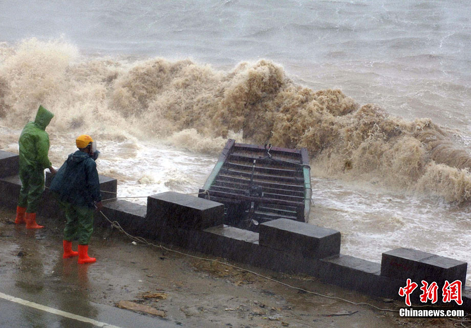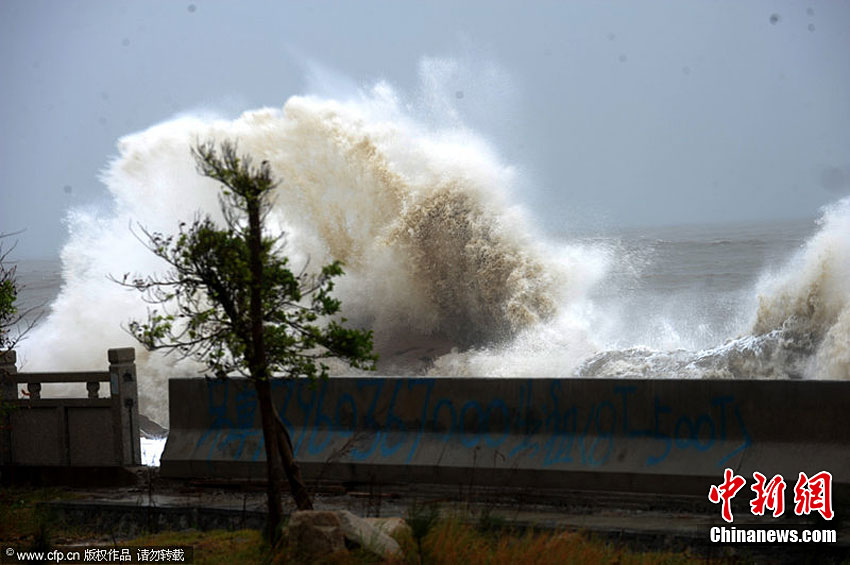 10月23日12時55分,今年第13號臺風(fēng)“鲇魚”在福建省漳浦縣六鰲鎮(zhèn)登陸,登陸時近中心最大風(fēng)力13級(風(fēng)速38米/秒),未來將向北偏西方向移動,強度逐漸減弱。圖片來源:CFP視覺中國 林良標 攝