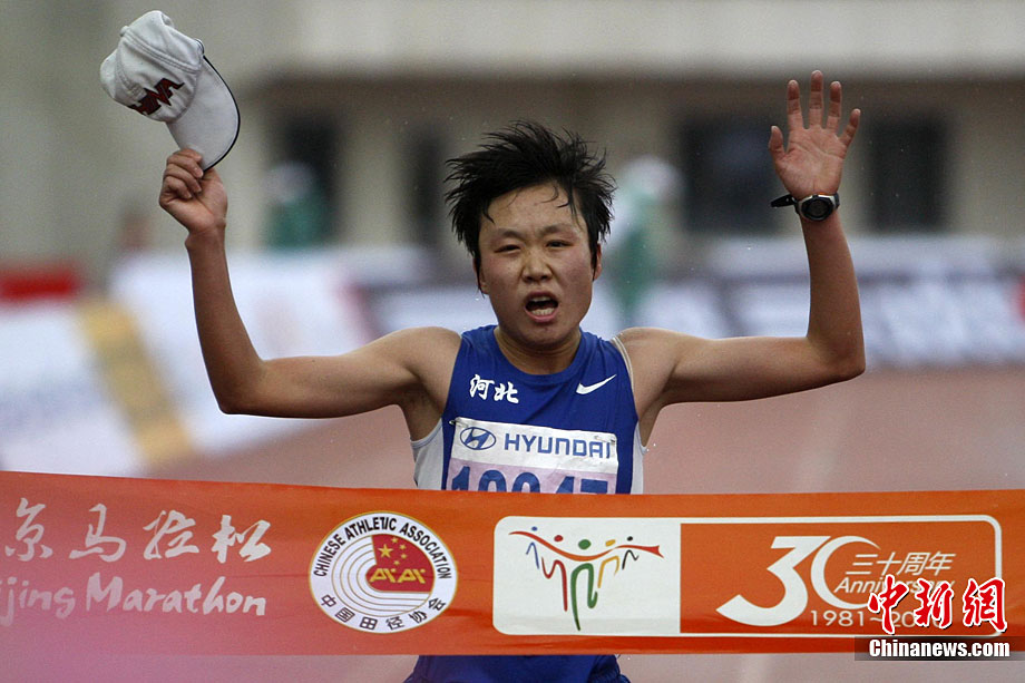10月24日8時,2010年北京馬拉松正式鳴槍,所有參賽運動員在淅淅瀝瀝的小雨中從天安門廣場出發(fā)。今年的北京馬拉松正式與國際接軌,與往年不同的特點是北京馬拉松賽、全國馬拉松錦標賽以及首都高校馬拉松賽“三賽合一”,并采取一次發(fā)槍制,所有組別的選手都同時出發(fā)。中新社記者 富田 攝