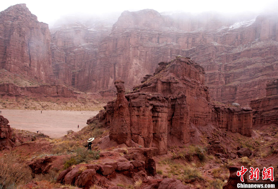 溫宿大峽谷是中國西部最美的丹霞地質(zhì)奇景、中國最大的巖鹽喀斯特地質(zhì)勝景。這里有中國罕見的遠古巖鹽地質(zhì)絕景、中國西部奇特的雅丹地質(zhì)怪景、中國獨有的巨型巖溶蝕地質(zhì)秘境,堪稱新疆“活的地質(zhì)演變史博物館”。溫宿大峽谷主要由庫都魯克谷、阿奇克蘇谷兩條巨大蜿蜒的峽谷組成,其間分布有千余條形態(tài)各異的支谷,旅游觀光區(qū)域達到了200余平方公里,喀斯特地貌、丹霞地貌、雅丹地貌、次雅丹地貌、鹽丘底劈構造地貌分布在峽谷之中,其地質(zhì)構造的多樣性、復雜性和人文景觀的獨特性極具視覺沖擊力。中新社記者 趙雋 攝