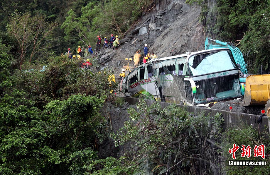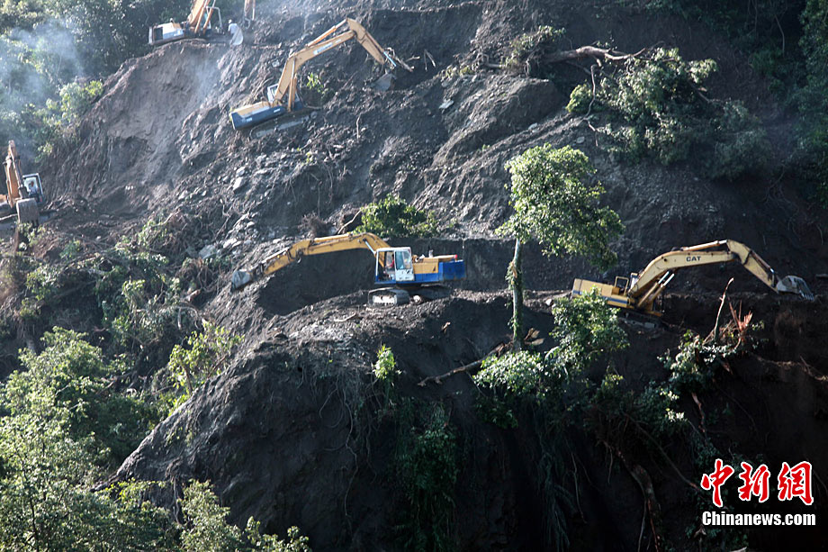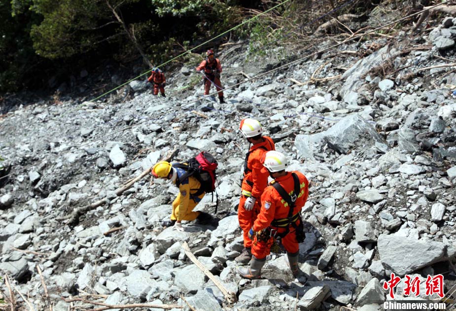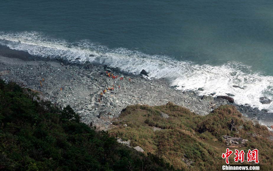 臺灣蘇花公路塌方事故已逾5天,事故發(fā)生的宜蘭縣一帶26日持續(xù)大雨。然而對失蹤者(包括18名大陸游客和2名大陸領(lǐng)隊(duì))的海陸空三路搜索仍在持續(xù),F(xiàn)場搜索進(jìn)展艱難,其間并發(fā)生一名搜救隊(duì)員被砸傷的情況。 中新社記者 王健 攝