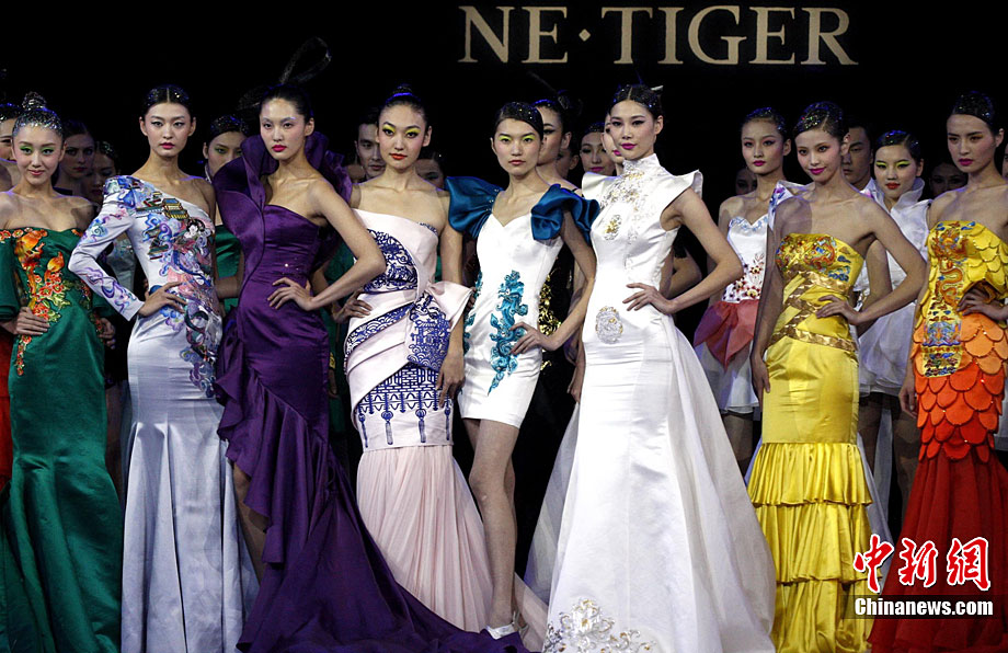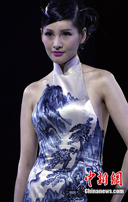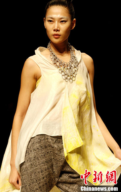 10月26日晚,正在北京舉行的中國(guó)國(guó)際時(shí)裝周上演EACHWAY·趙卉洲2011春夏時(shí)裝發(fā)布會(huì),該作品風(fēng)格簡(jiǎn)約自然、清新優(yōu)雅、大氣內(nèi)斂,贏得眾多職場(chǎng)女性的青睞。2011春夏系列包含三大主題:“深海精靈”(藍(lán)綠色系)、“夢(mèng)游幻境”(粉紫色系)、“雙色游戲”(米咖色系),圍繞摩登柔美和經(jīng)典的花卉印花兩大元素展開。中新社記者 錢興強(qiáng) 攝