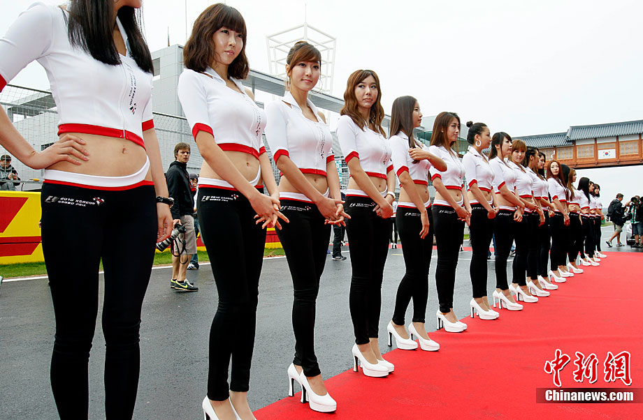 10月24日,F(xiàn)1韓國站比賽在韓國靈巖新建的朝鮮國際賽車場舉行。韓國眾多靚麗車模齊站賽道兩邊歡迎各路車手參賽。據(jù)悉,這是朝鮮國際賽車場首次迎接世界頂級賽事。