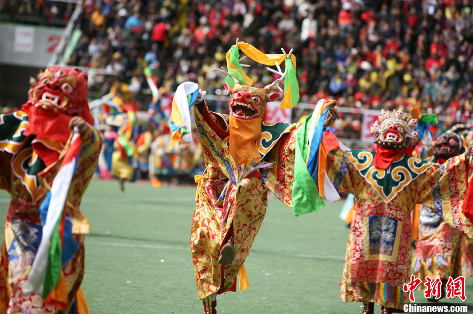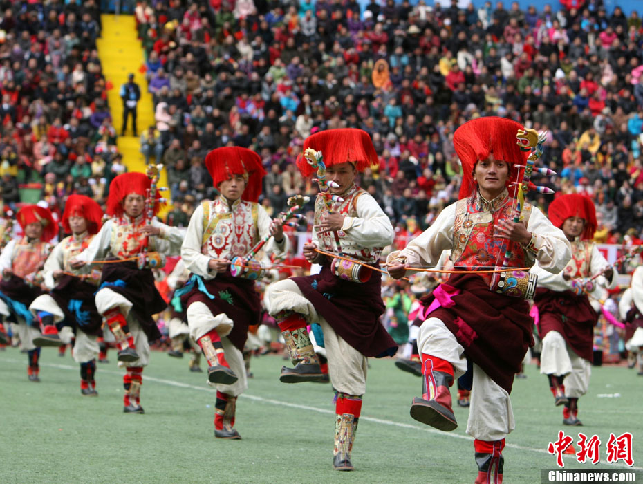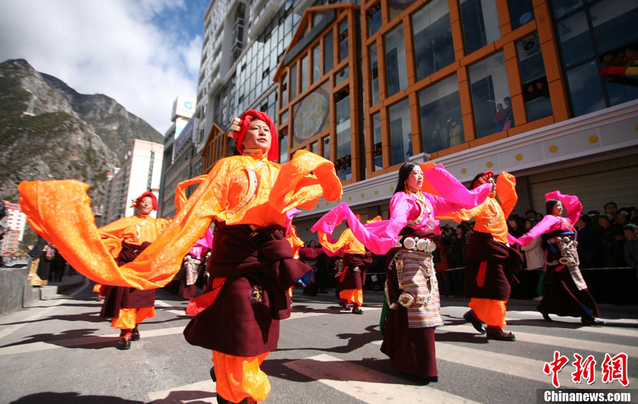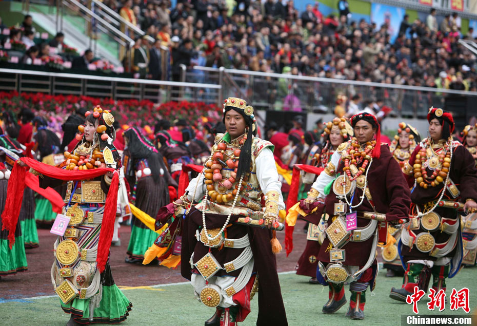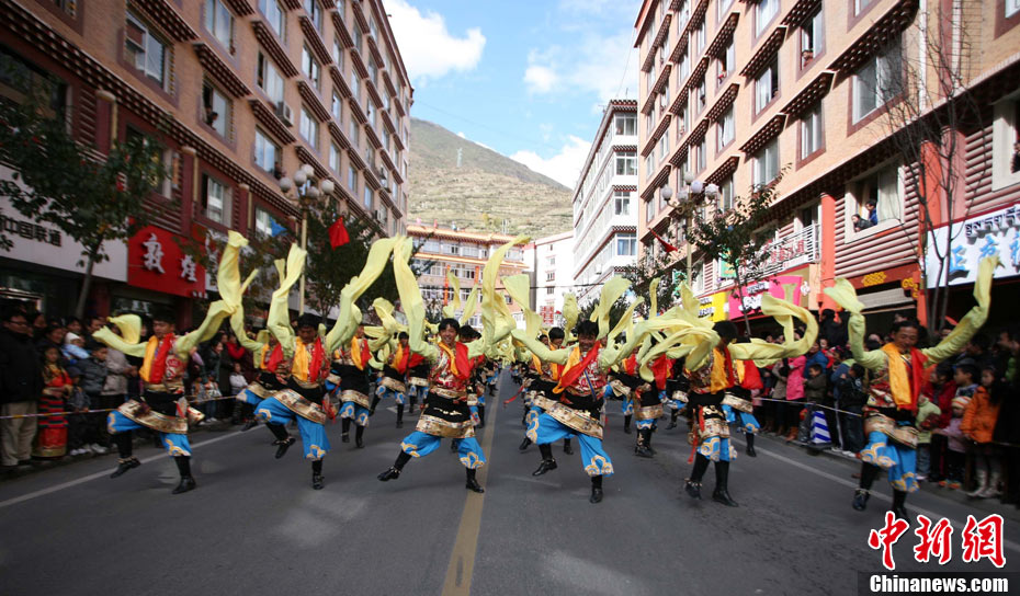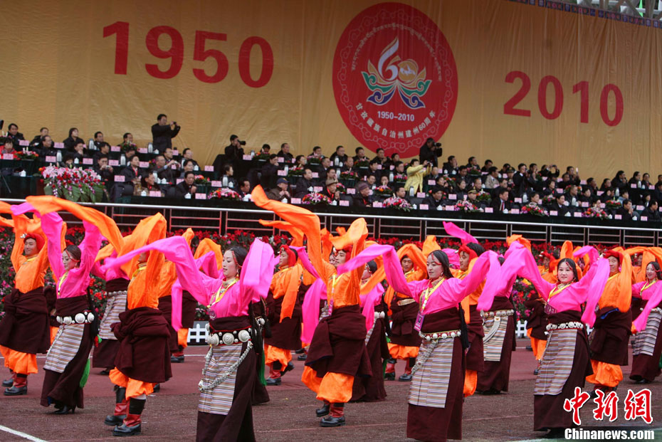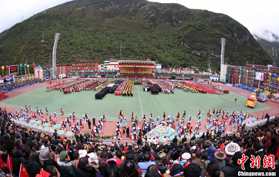 10月27日,四川甘孜藏族自治州舉行慶典活動慶祝建州60周年。甘孜藏族自治州成立于1950年11月24日,是新中國成立后建立的第一個專區(qū)級少數(shù)民族自治州。甘孜位于四川省西部,青藏高原東南緣,地處川、滇、藏、青交界處,轄18個縣,325個鄉(xiāng)(鎮(zhèn)),總?cè)丝?02萬,藏族人口占80%以上。圖為慶典現(xiàn)場。中新社發(fā) 劉忠俊 攝
