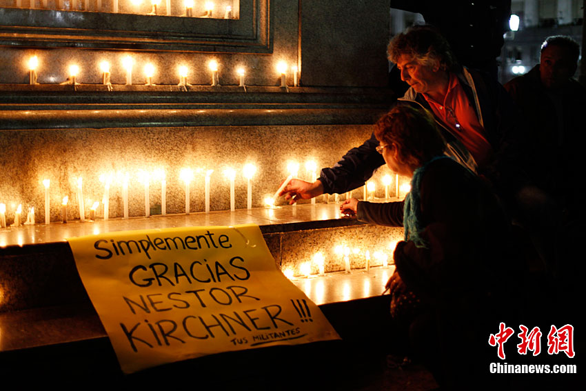 阿根廷政府當?shù)貢r間10月27日宣布全國哀悼3天,悼念當天去世的前總統(tǒng)、南美洲國家聯(lián)盟首任秘書長內斯托爾·基什內爾,F(xiàn)年60歲的基什內爾因心臟病突發(fā),于27日在阿根廷南部城市卡拉法特去世。阿政府目前還沒有公布安葬基什內爾的地點。此前當?shù)孛襟w稱基什內爾將被安葬在他的出生地——阿根廷南方圣克魯斯省的里奧加耶戈市。