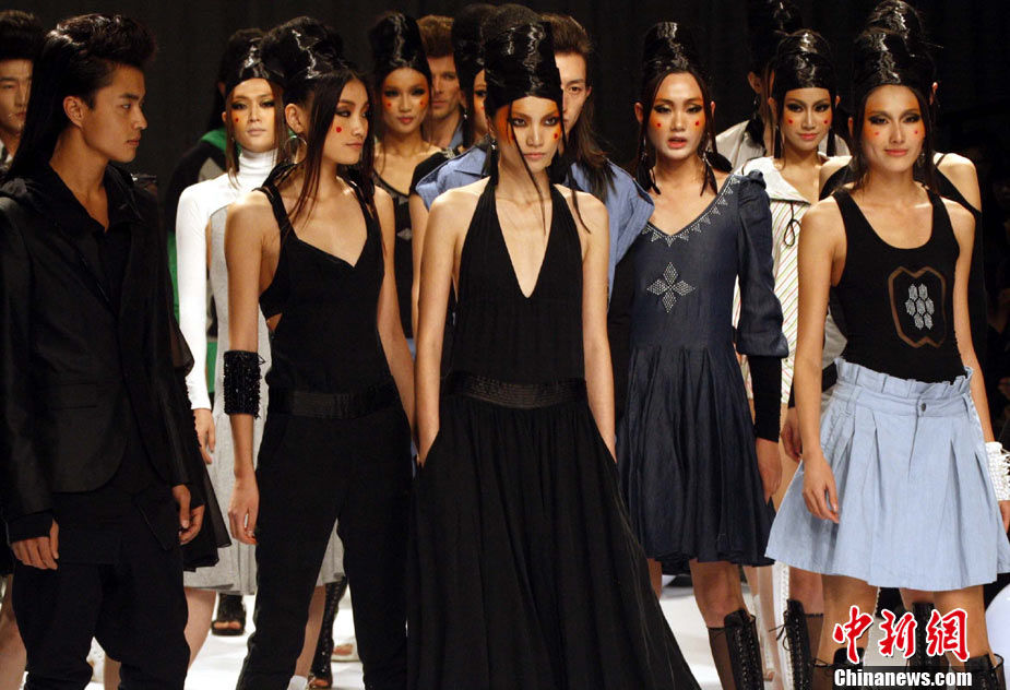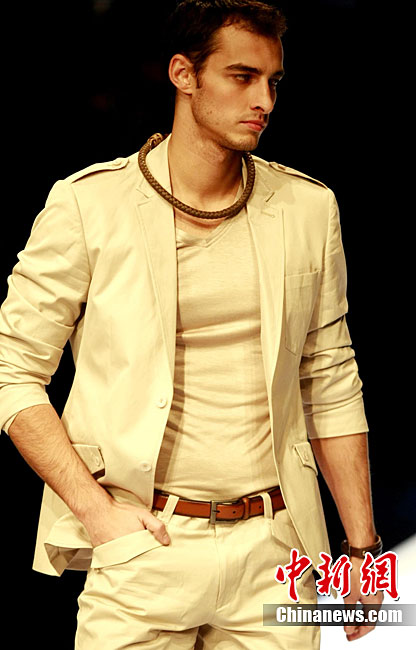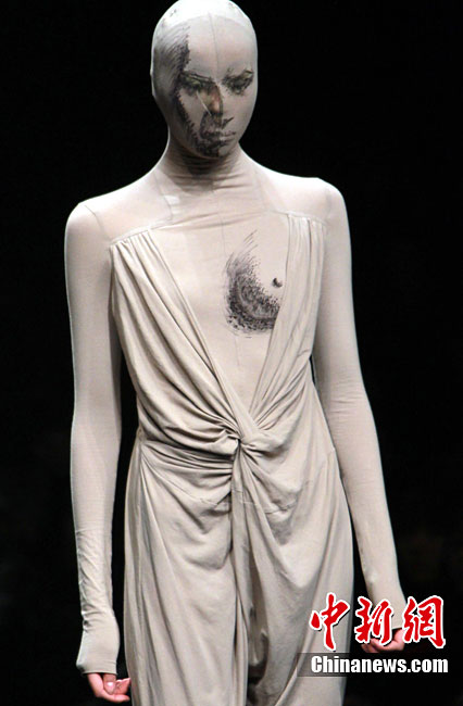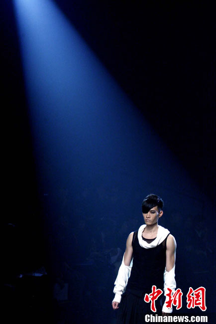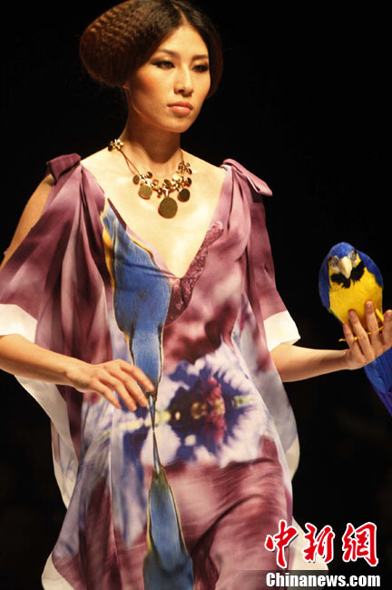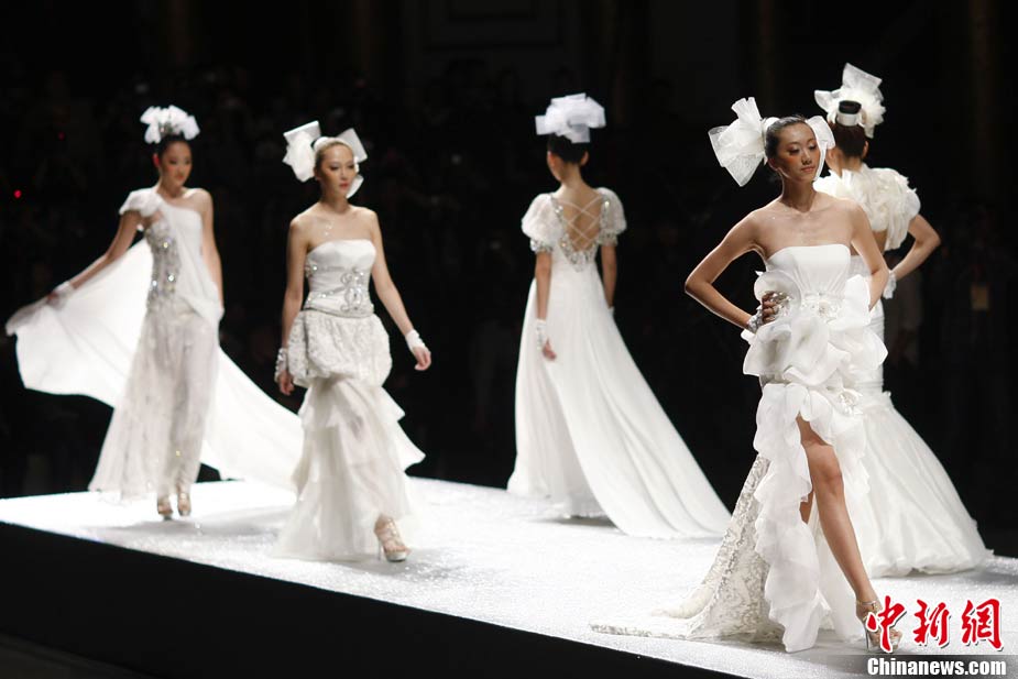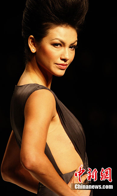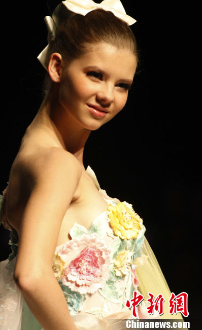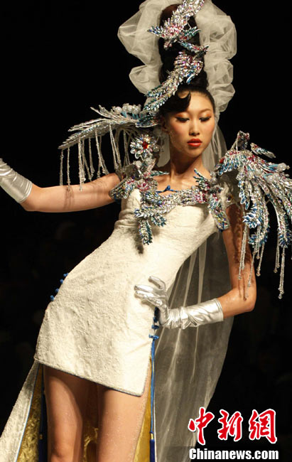 10月28日,正在北京舉行的中國(guó)國(guó)際時(shí)裝周上演DORIANHO·何國(guó)鉦“穿梭時(shí)空之旅”2011春夏高級(jí)時(shí)裝秀。設(shè)計(jì)師何國(guó)鉦擅長(zhǎng)利用一些基本但經(jīng)典的款式配上高級(jí)布料及得體的顏色,再加上形形色色的水晶、珠片及手工釘珠,用細(xì)節(jié)去演繹現(xiàn)代女性之美。圖為香港名模羅絲瑪瑞演繹何國(guó)鉦2011春夏高級(jí)時(shí)裝。中新社記者 錢(qián)興強(qiáng) 攝