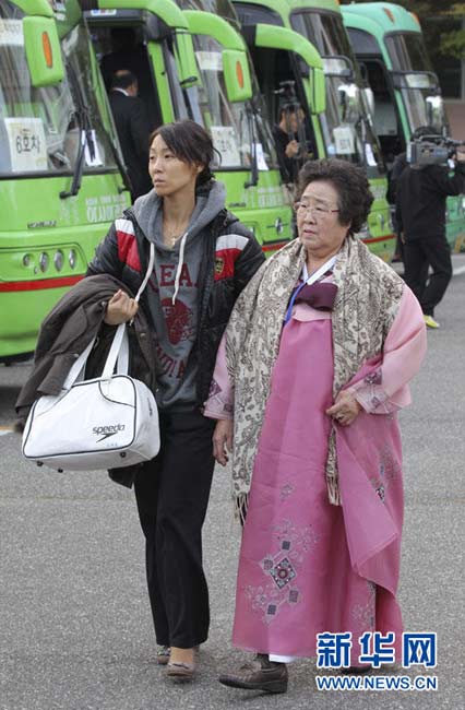 朝鮮和韓國的離散家屬30日開始在朝鮮境內(nèi)的金剛山地區(qū)舉行中秋會面活動。這是朝韓離散家屬時隔13個月再次舉行中秋會面。圖片來源:新華網(wǎng)