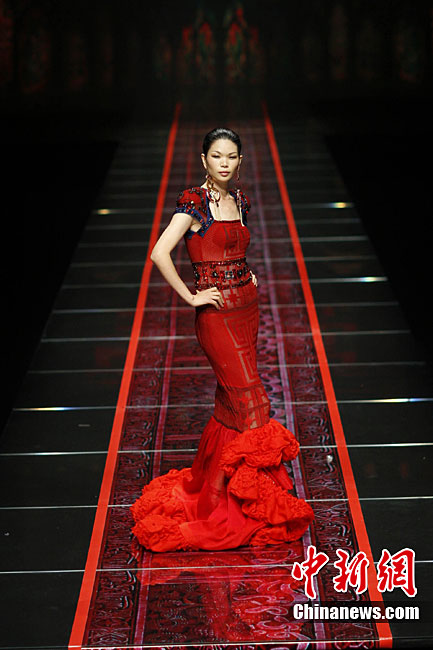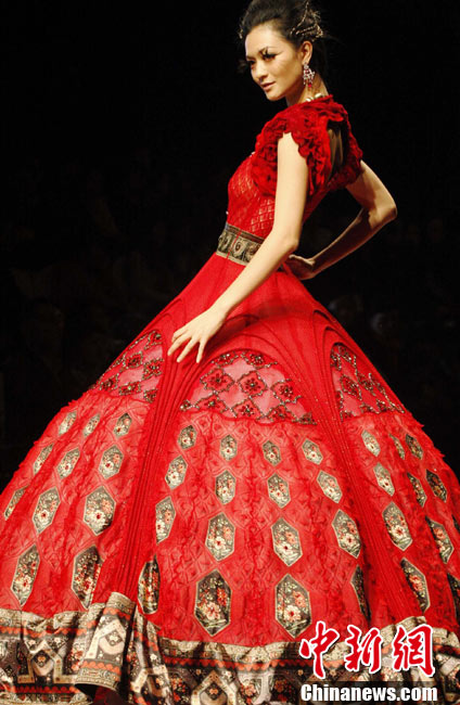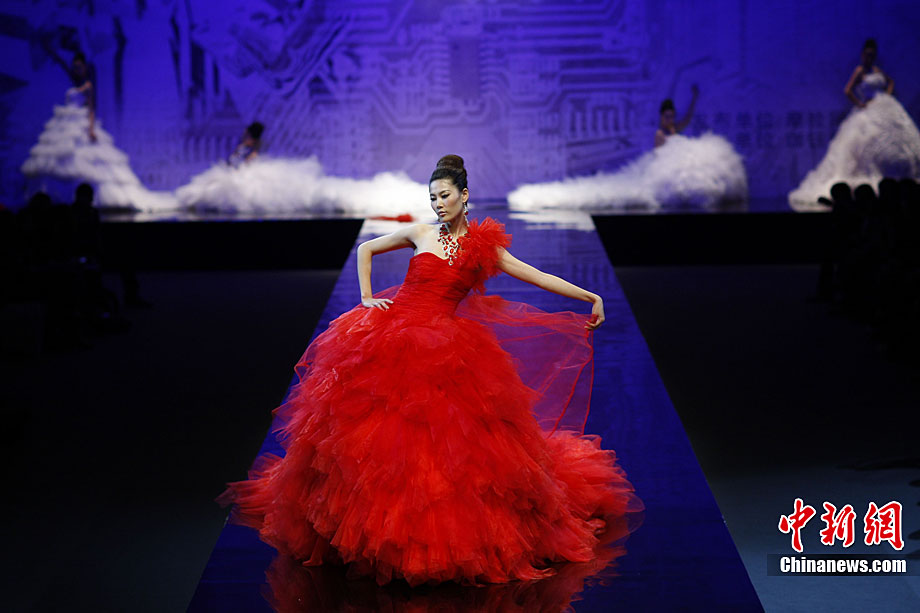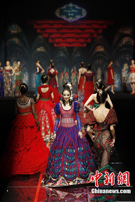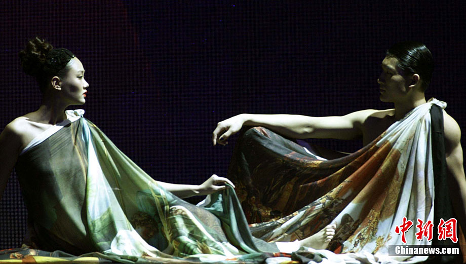 10月31日晚,“東方夏娃”托尼、李當(dāng)岐、張肇達時裝藝術(shù)秀在北京舉行,這場秀是由3位在文化藝術(shù)領(lǐng)域幾乎沒有“交集”的大師級人物共同主創(chuàng),他們是國內(nèi)知名教育學(xué)者李當(dāng)岐教授、英國頂級雕塑家托尼、杰出服裝設(shè)計師張肇達。中新社記者 盛佳鵬 攝