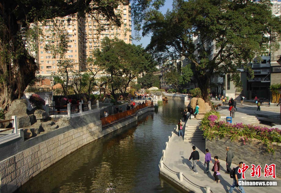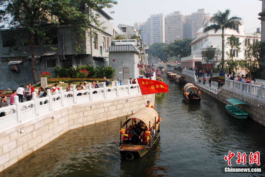 經(jīng)過(guò)大半年的揭蓋復(fù)涌,整飾一新的廣州荔枝灣涌,如今重現(xiàn)嶺南水鄉(xiāng)美景的風(fēng)貌。11月4日,“看亞運(yùn),游西關(guān)”荔灣精典一日游活動(dòng)在荔枝灣舉行了啟動(dòng)儀式,迎來(lái)了數(shù)千名游客和市民。中新社記者 梁永強(qiáng) 攝