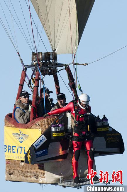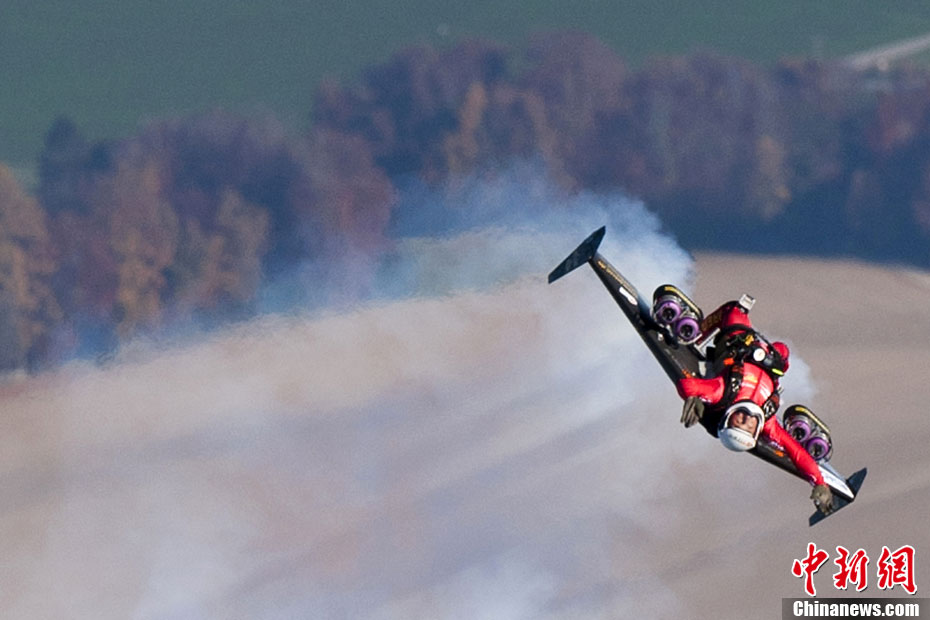 瑞士“火箭人”上演空中筋斗特技