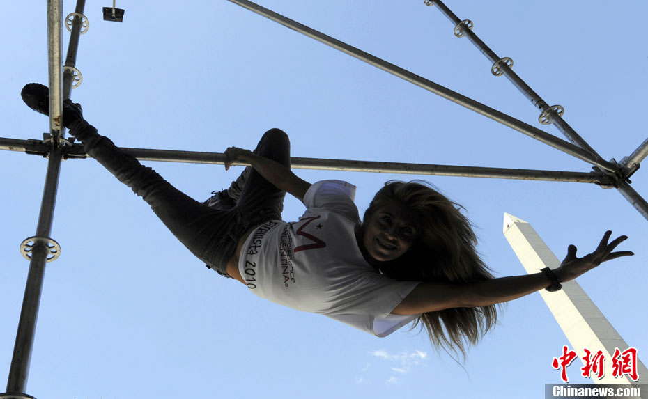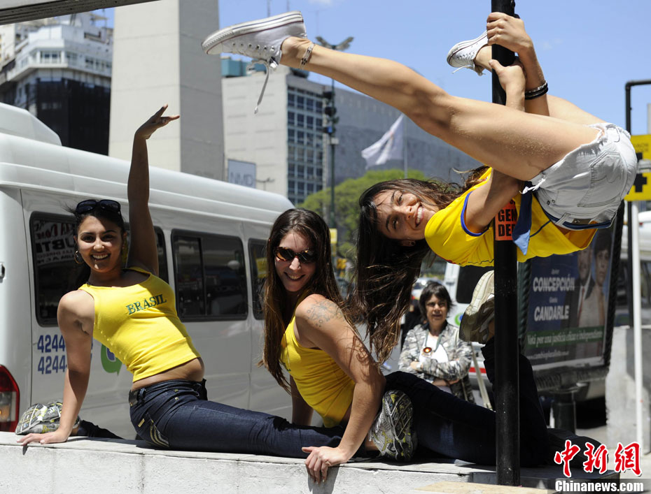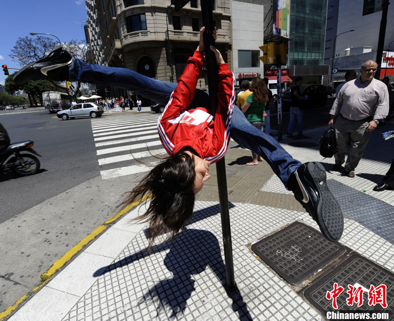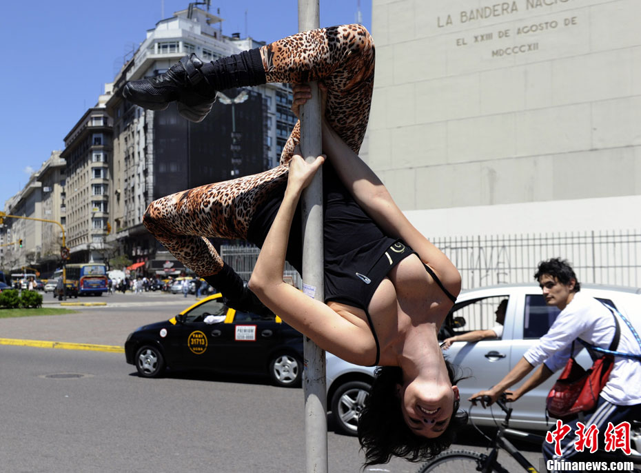 當地時間11月5日,阿根廷“鋼管舞小姐大賽”評委在布宜諾斯艾利斯街頭上演了火辣的鋼管舞表演。