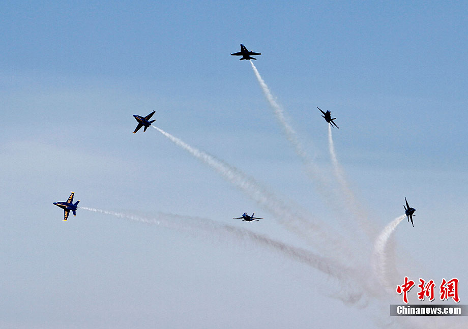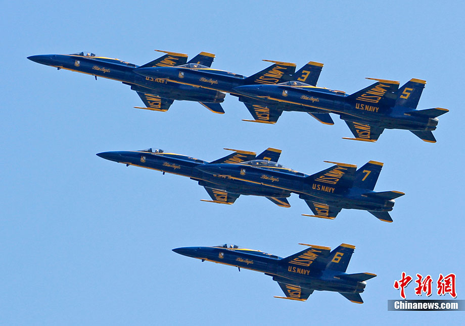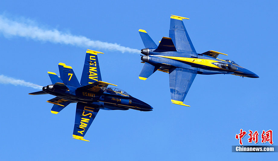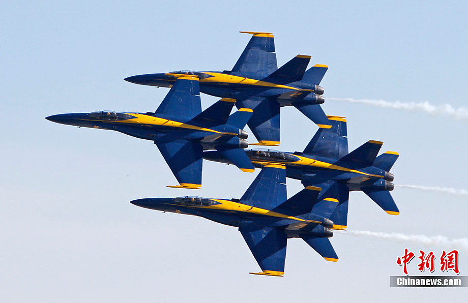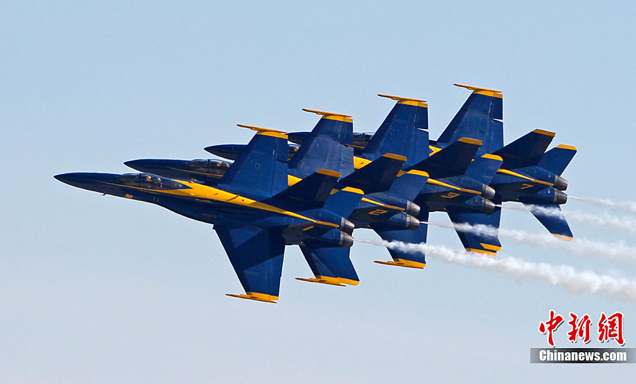 當(dāng)?shù)貢r間11月5日,美國邁阿密近郊的霍姆斯帝德空軍儲備基地為當(dāng)?shù)鼐用窈陀慰蜕涎萘司式^倫航空飛行表演。世界上最優(yōu)秀的特技飛行表演隊之一,同時也是目前世界上唯一一支屬于海軍航空兵的飛行表演隊--美國海軍“藍天使”飛行表演隊駕駛f/a-18“大黃蜂”戰(zhàn)斗機,翱翔藍天,上演令人驚嘆,眼花繚亂的空中特技。
