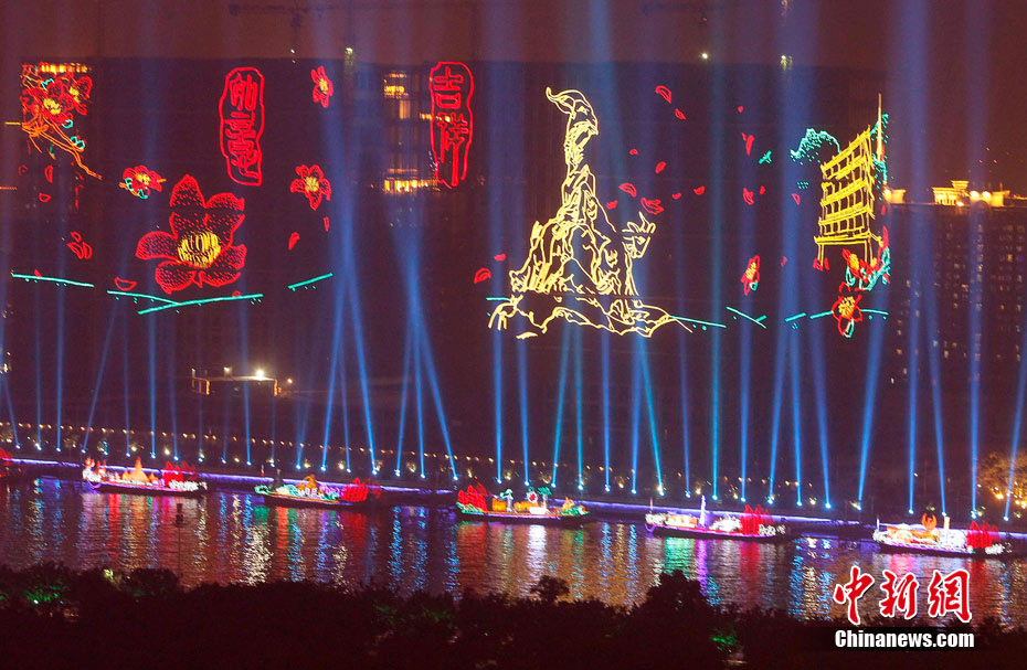 11月10日晚,廣州亞運(yùn)會(huì)開幕式舉行最后一次彩排,珠江兩岸流光溢彩。中新社記者 任晨鳴 攝