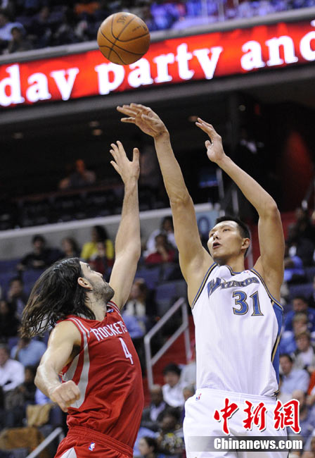北京時(shí)間11日,NBA“中國(guó)德比”在華盛頓打響。姚明所在的火箭客場(chǎng)以91-98不敵易建聯(lián)效力的奇才。姚明和易建聯(lián)兩人并沒(méi)在場(chǎng)上面對(duì)面交手。姚明只打了6分鐘就受傷遺憾提前離場(chǎng)。易建聯(lián)此后替補(bǔ)上場(chǎng),兩人失之交臂。此役阿聯(lián)表現(xiàn)搶眼,全場(chǎng)蓋帽4次,還貢獻(xiàn)了13分,搶下7個(gè)籃板。
